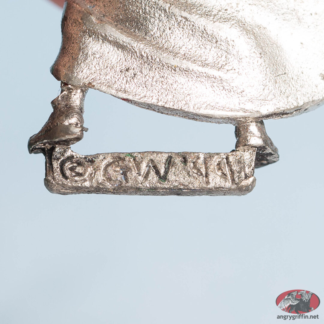 This metal Mordheim miniature was Aenur, the Sword of Twilight and according to the 2000 catalogue he was sculpted by Brian Nelson. The back of his tab says 1999.