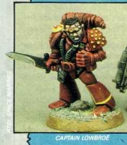 This metal Rogue Trader Space Marine Captain is shown as Captain Reece early on and later as part number 070119/26. He has 1987 on the tab and is a Bob Naismith sculpt.