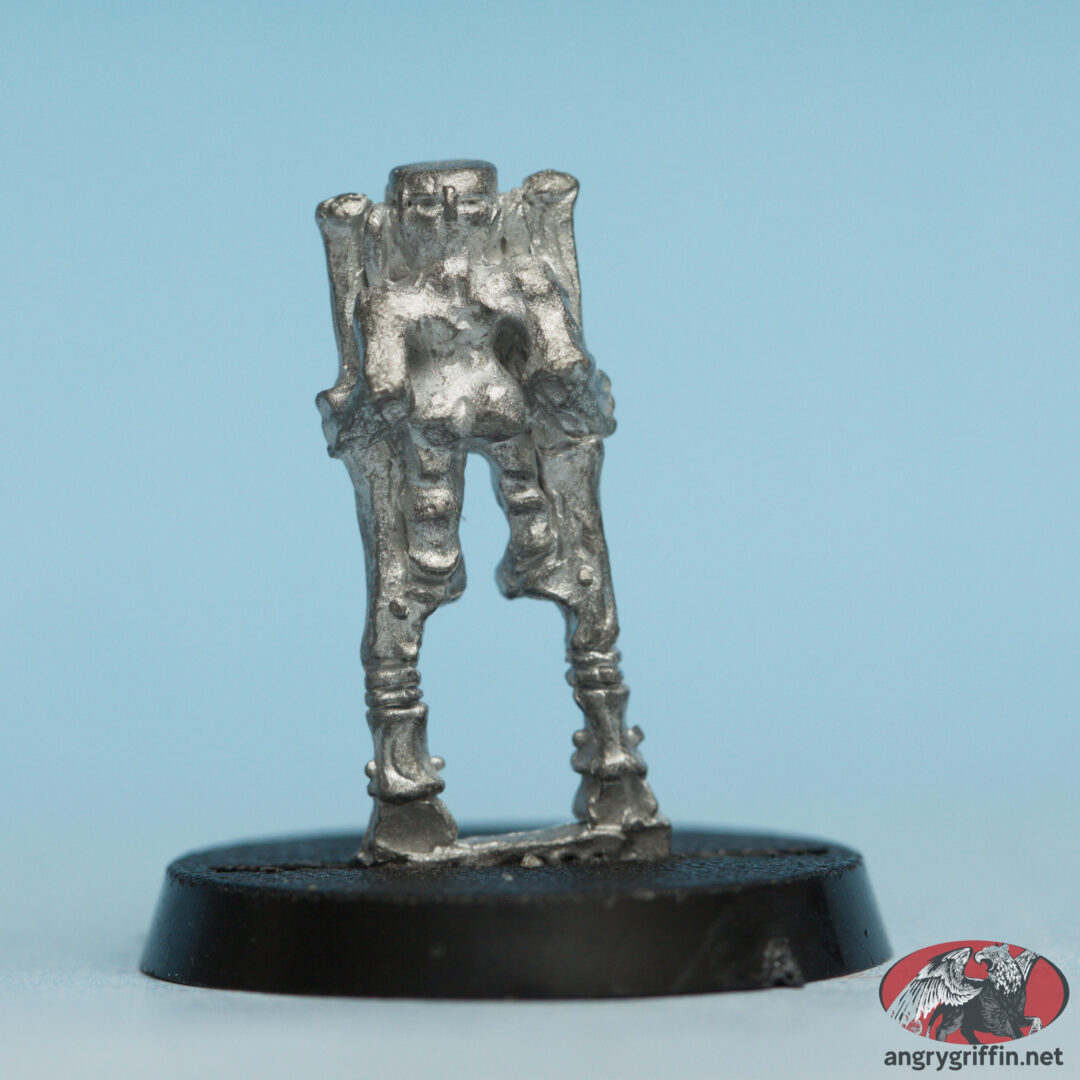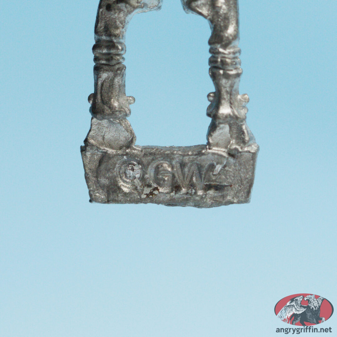 This Warhammer Fantasy Battle Chaos Familiar went by the name “Stilts” and is credited to Jes Goodwin in the catalogues. There’s no year on the tab, unfortunately. The 1991 Red catalogue has it as part number 073128/35A.