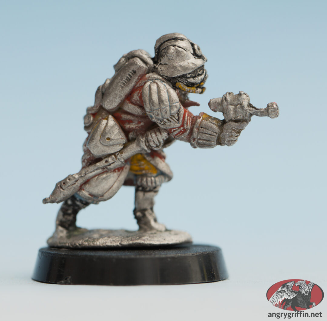 This metal miniature was from Citadel’s Spacefarers range and was called the S30 Imperial Invincible Captain with Needle Gun and Force Sword.