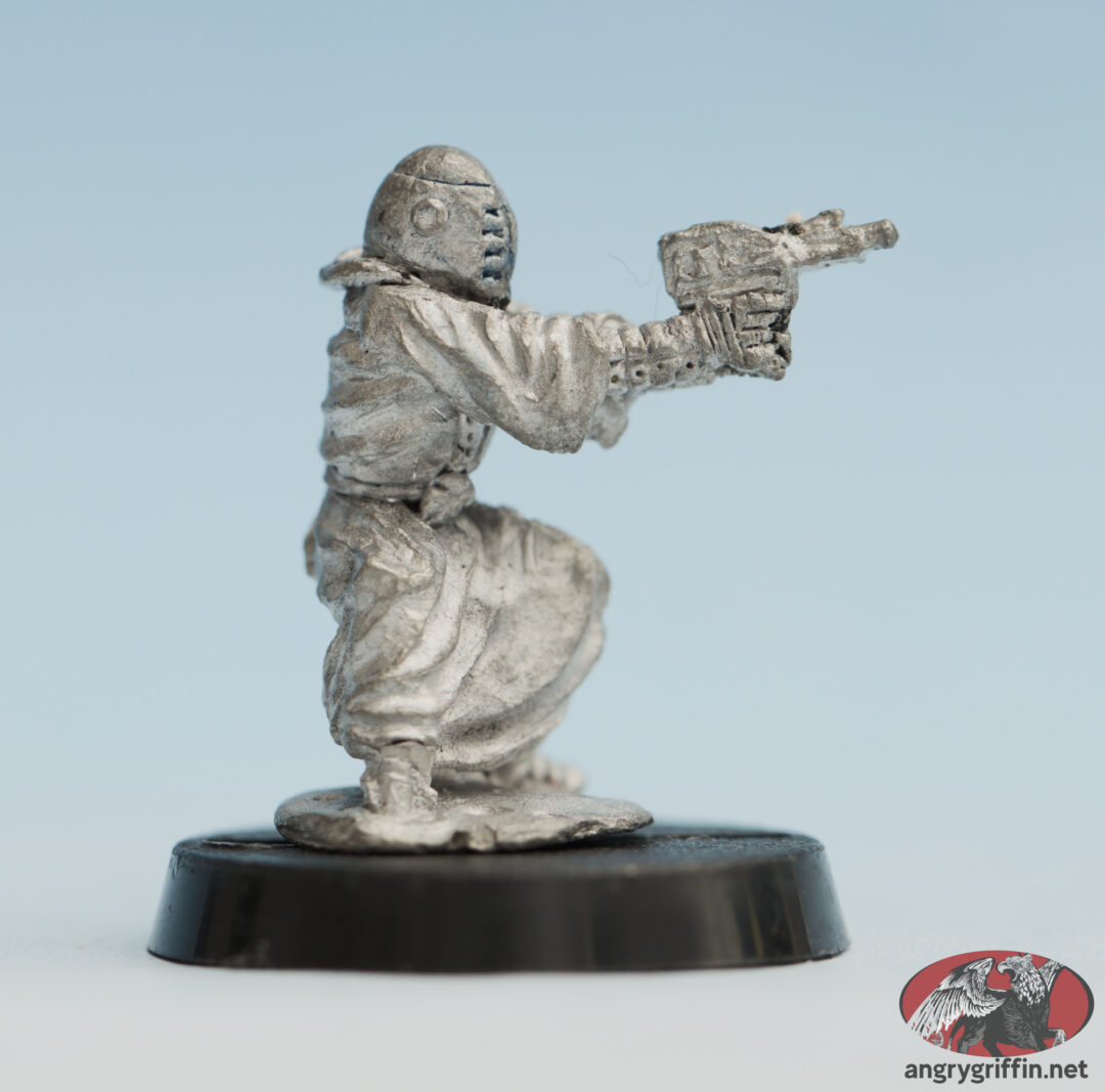 Citadel Spacefarers S29 Dark Disciple Monk This metal miniature was from Citadel’s Spacefarers range, and went by S29 Dark Disciple Monk with Bolt Gun. Tags: Sculptor: Unknown, Year: Unknown