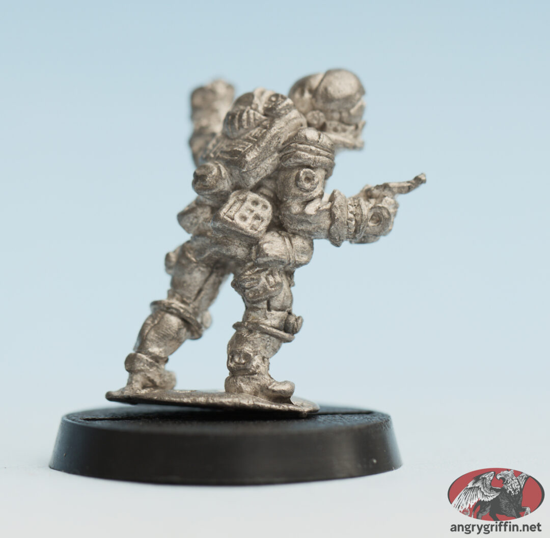 Citadel Spacefarers S38 Imperial Officer This metal miniature was one of the Citadel Spacefarers miniatures, going by S38 Imperial Marine Officer with Laser Pistol. Tags: Sculptor: Unknown, Year: Unknown