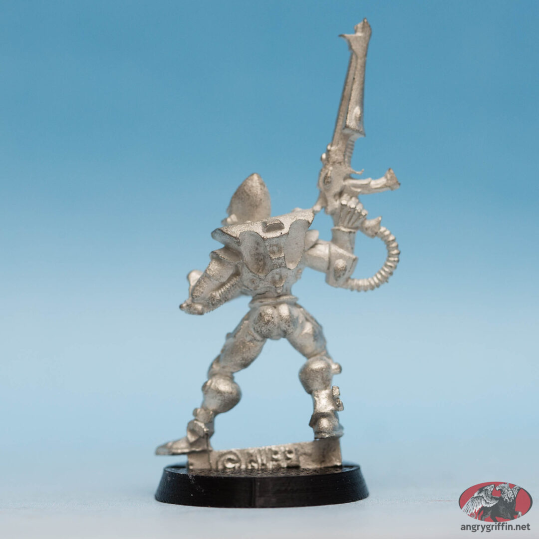 This metal Eldar Gun Crew miniature for Warhammer 40K has 1999 on the tab, making it a 3rd Edition release. I don’t know who the sculptor is!