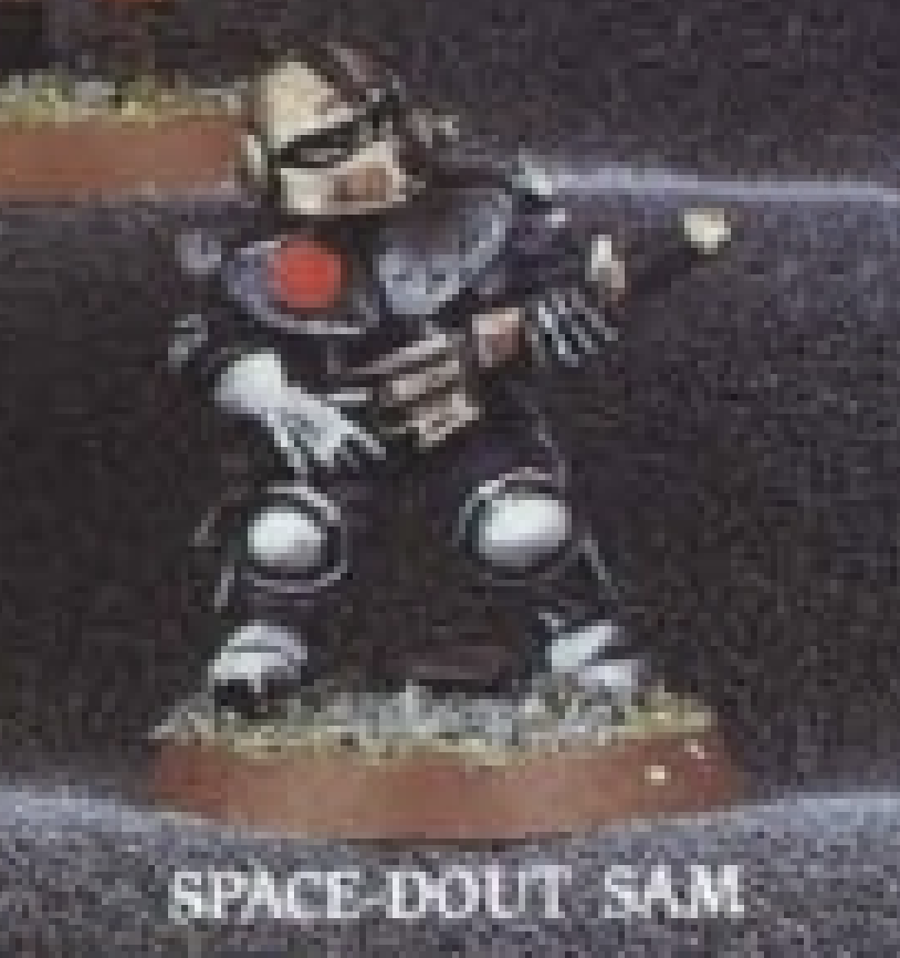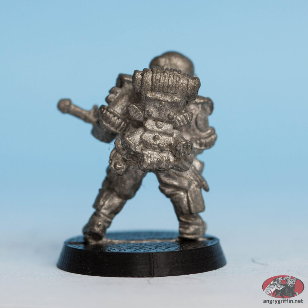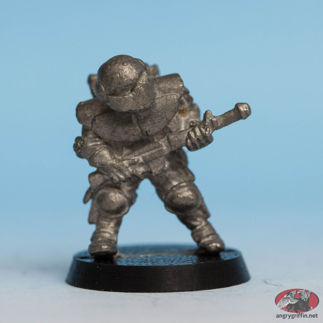 This Imperial Heavy Infantry is a Bob Naismith sculpt from the earliest Rogue Trader releases. He’s also shown in the later Mercenaries range as “Space-Dout Sam”.