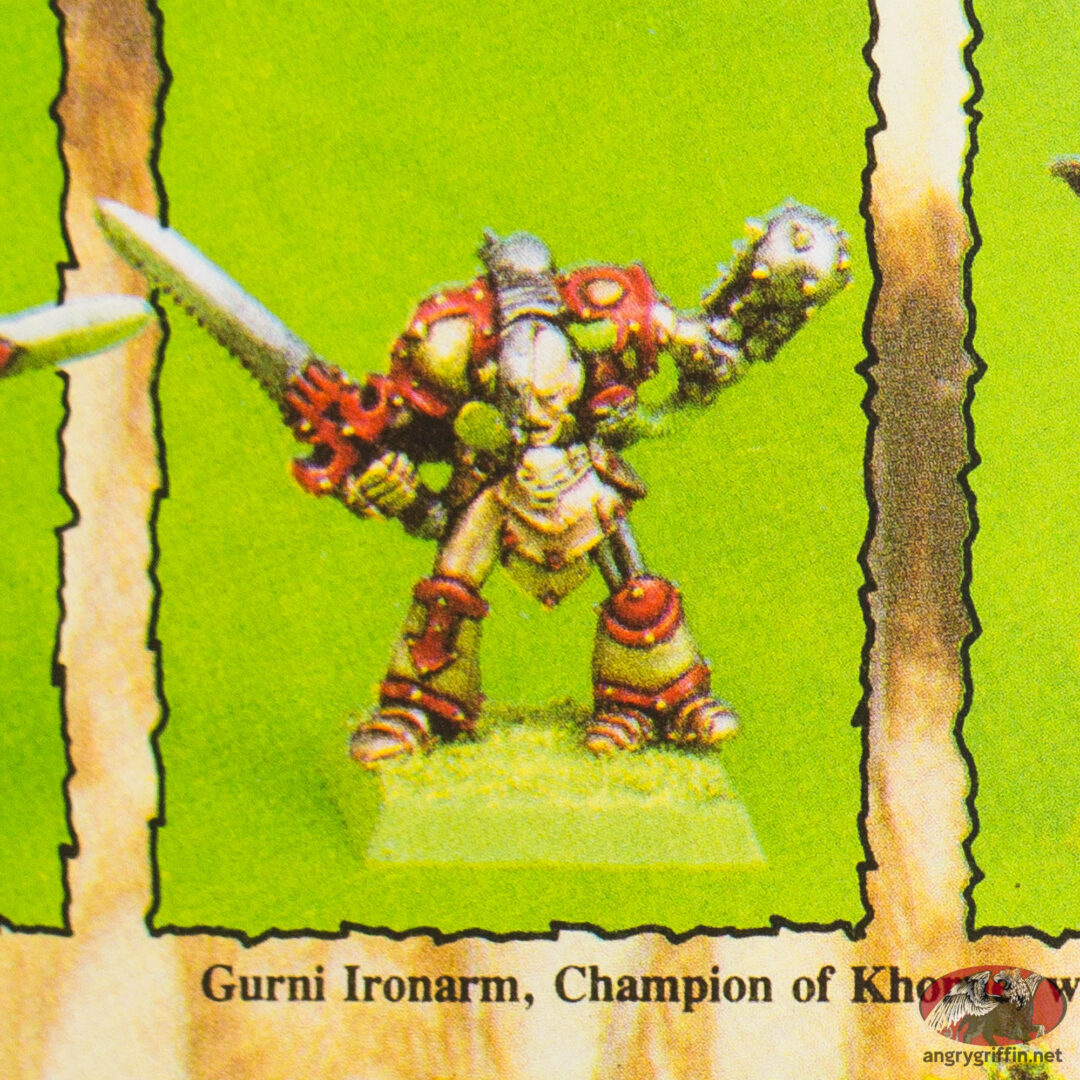 He can be seen as Gurni Ironarm, Khorne Champion in Slaves to Darkness: