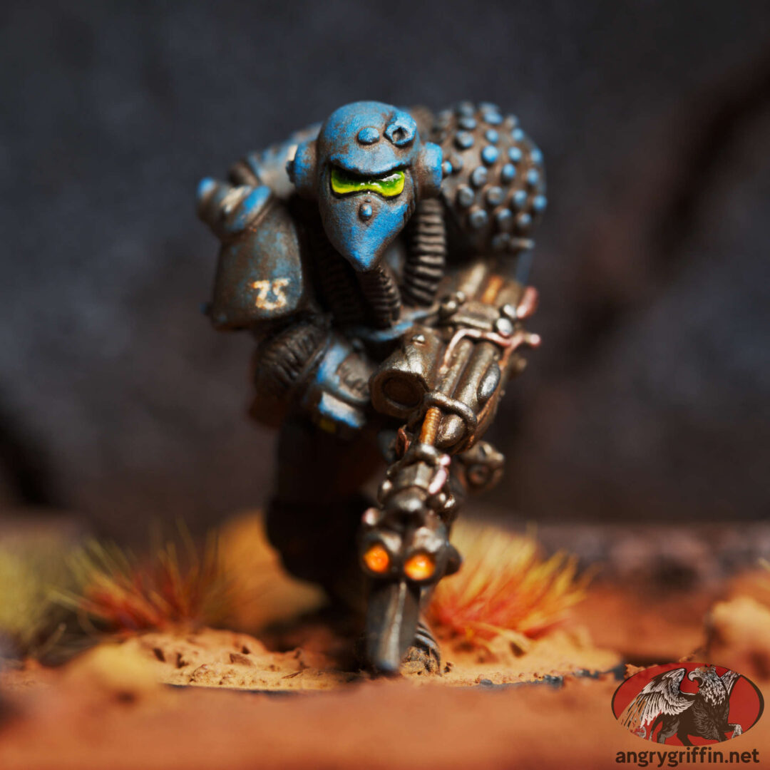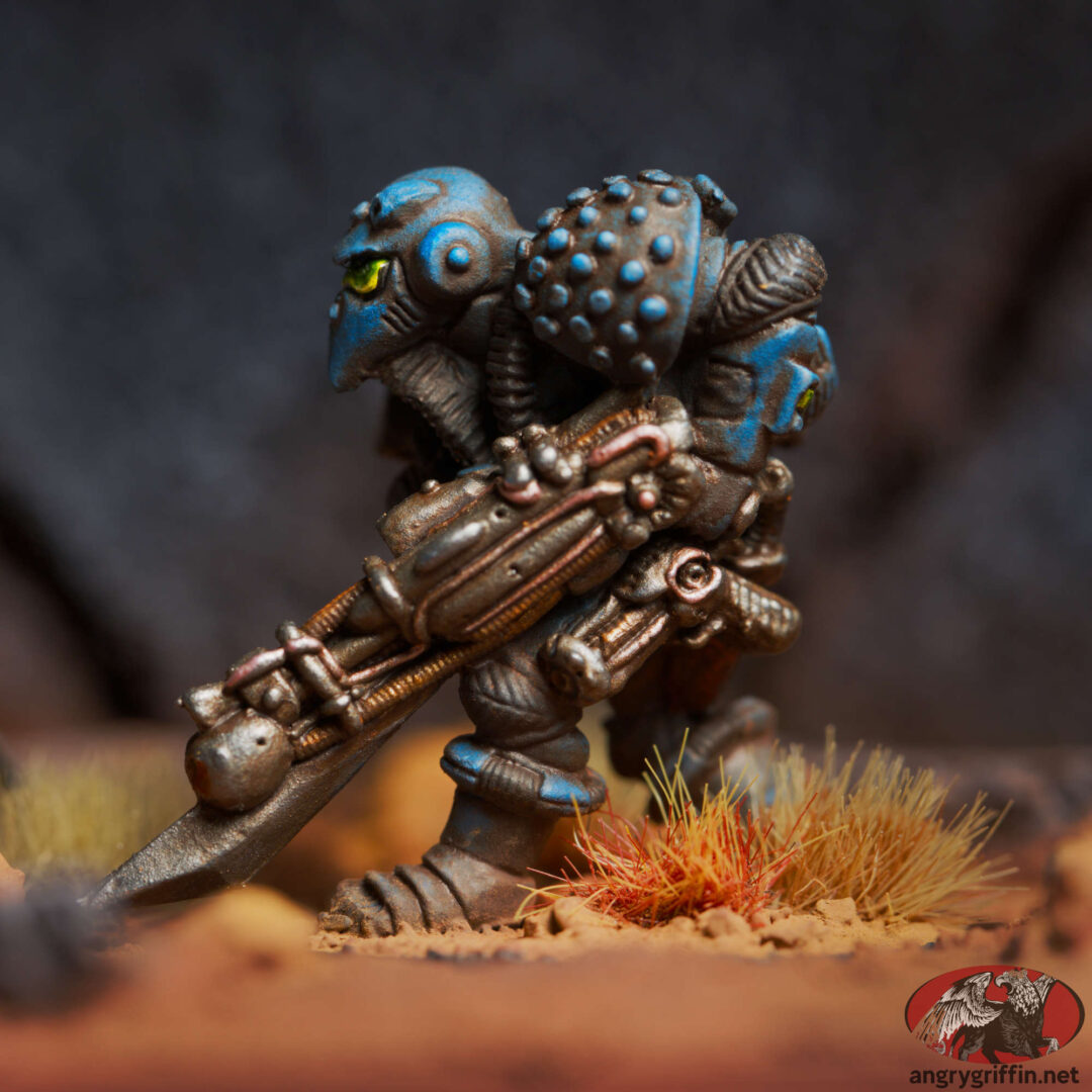 Something about the business of the gun design made it a challenge to paint – in the end I picked out two accent colours on top of the silver and then washed the lot.