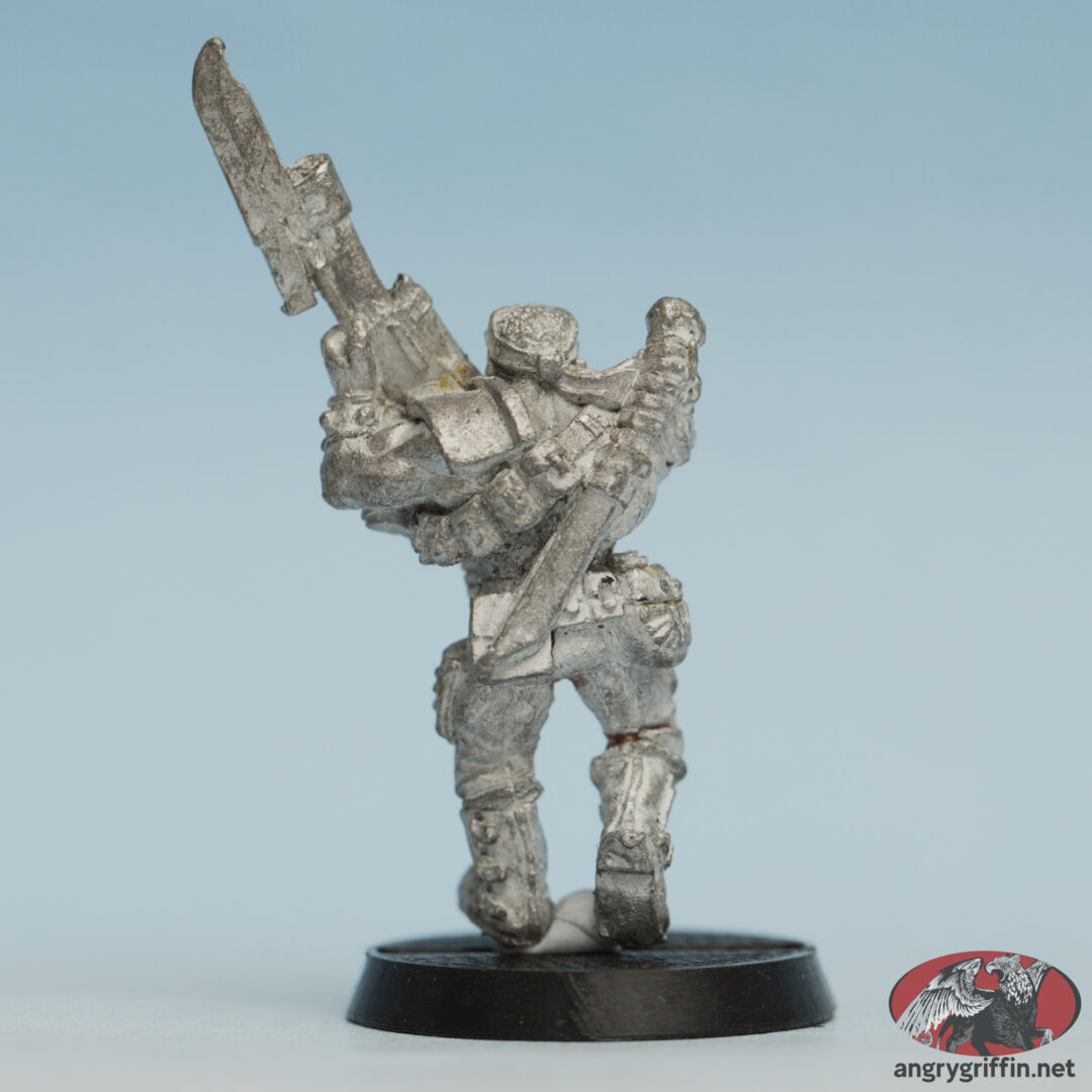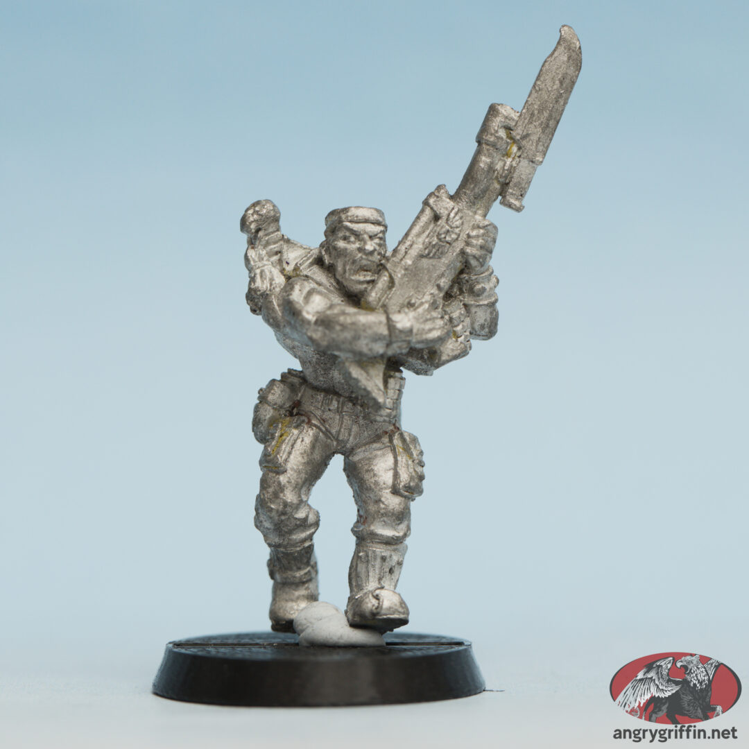 This metal Warhammer 40K miniature was one of the Imperial Guard Catachan models. It was Lasgun 2.