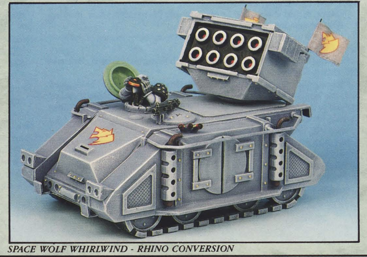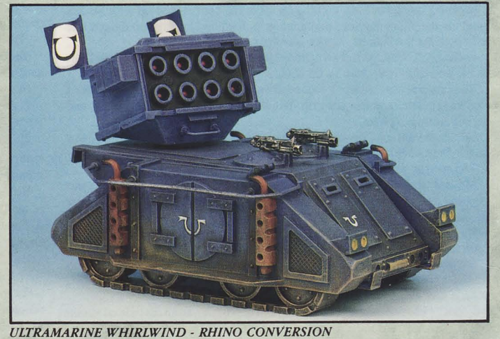 The Whirlwind was first discussed in White Dwarf #117 – from the Rogue Trader era – in an article by Rick Priestly with a following article by Tony Cottrell discussing how to convert a Rhino into a Whirlwind, since there was no official model at the time.