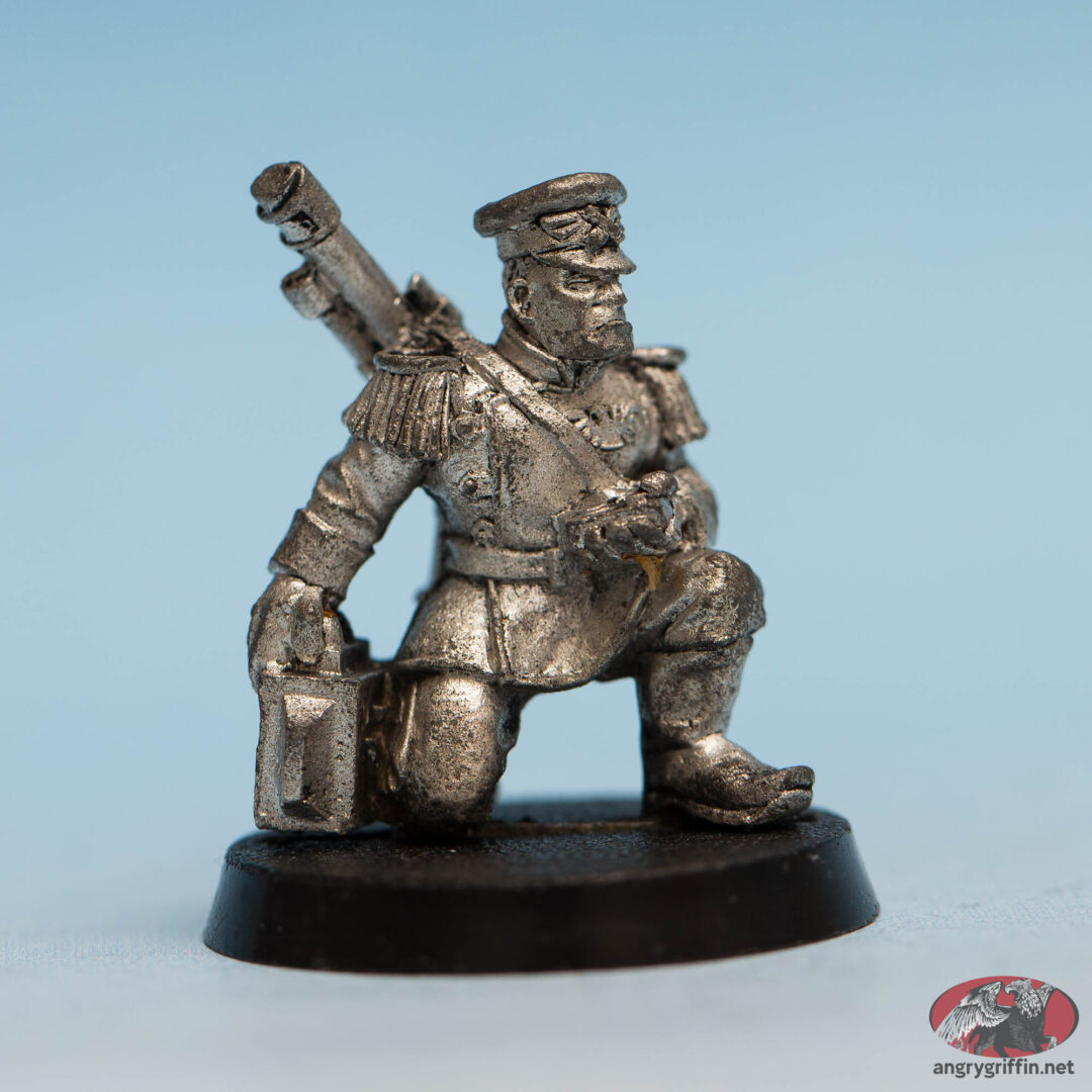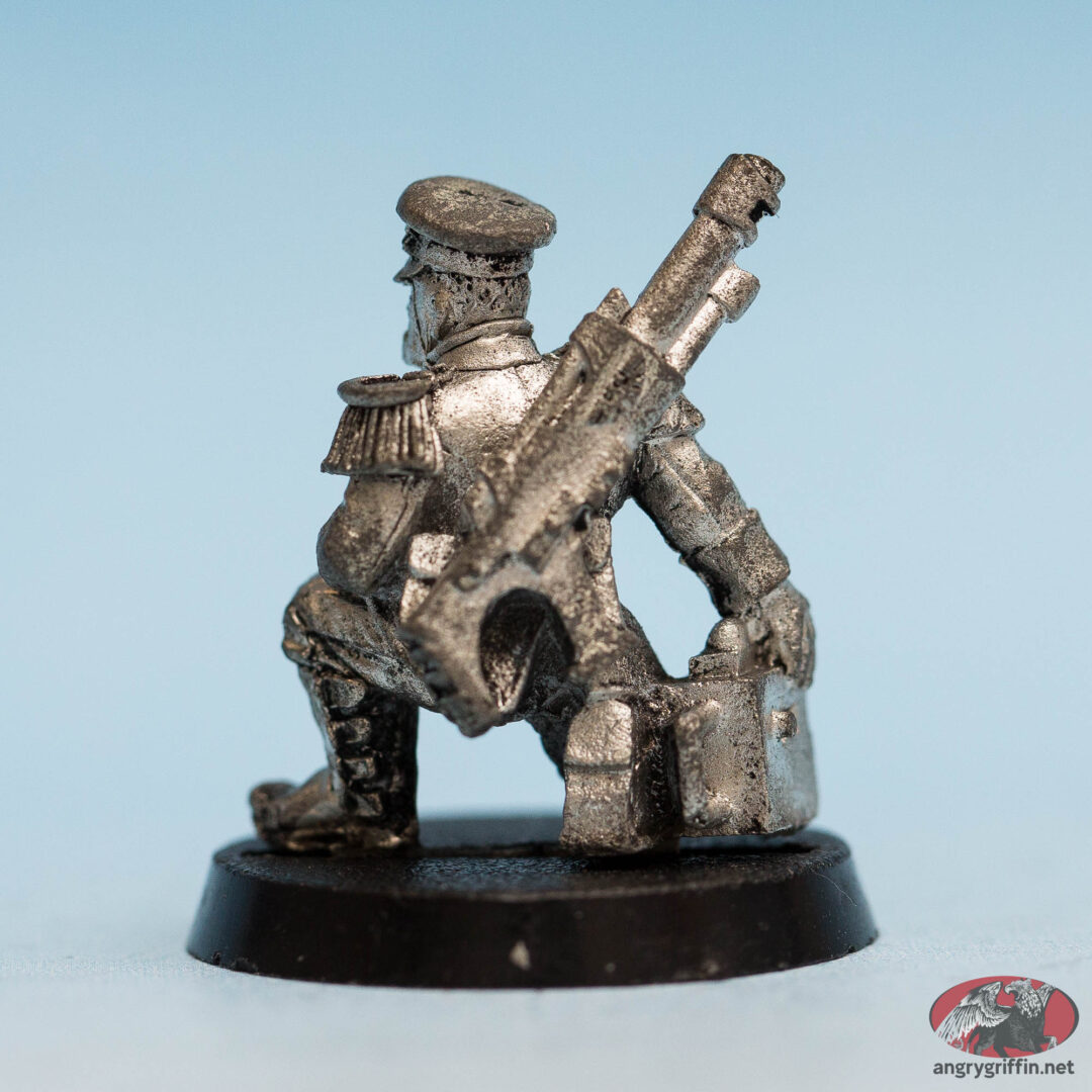 This metal Imperial Guard Mordian Iron Guard Lascannon Loader was part number 010500408. He’s a 1994 Michael Perry sculpt.