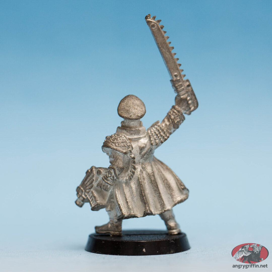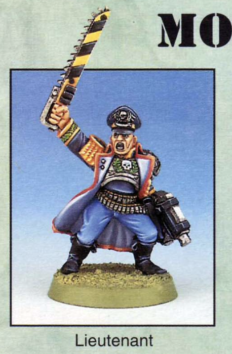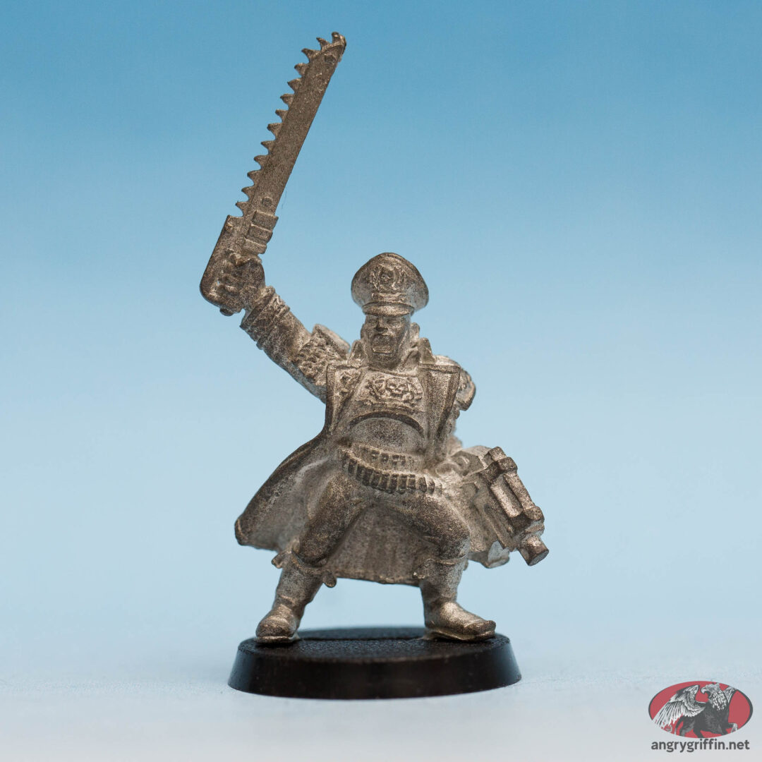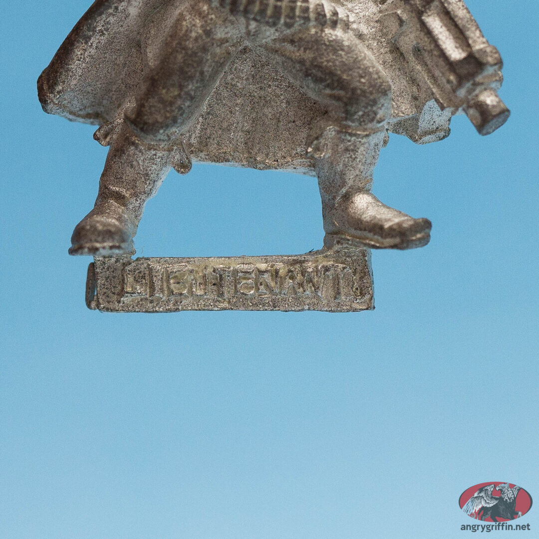 This Warhammer 40K Imperial Guard Lieutenant is one of the Mordian Iron Guard. He’s a 1994 Michael Perry sculpt and was part number 72208/1 in the 1995 catalogue, and 010501001 in some later catalogues.