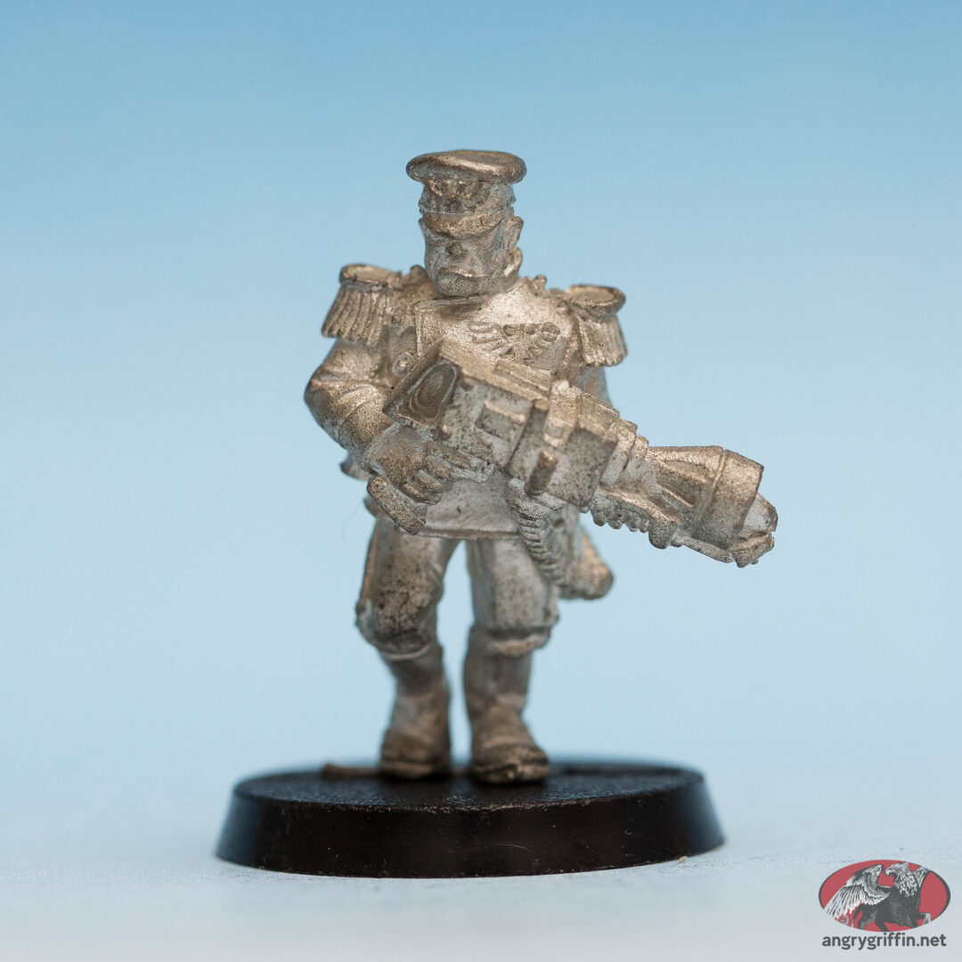 This Imperial Guardsman is one of the Mordian Iron Guard and came with a flamer. He’s a 1994 Michael Perry sculpt and was part number 72227/19 in the 1995 catalogue and later 010505919.