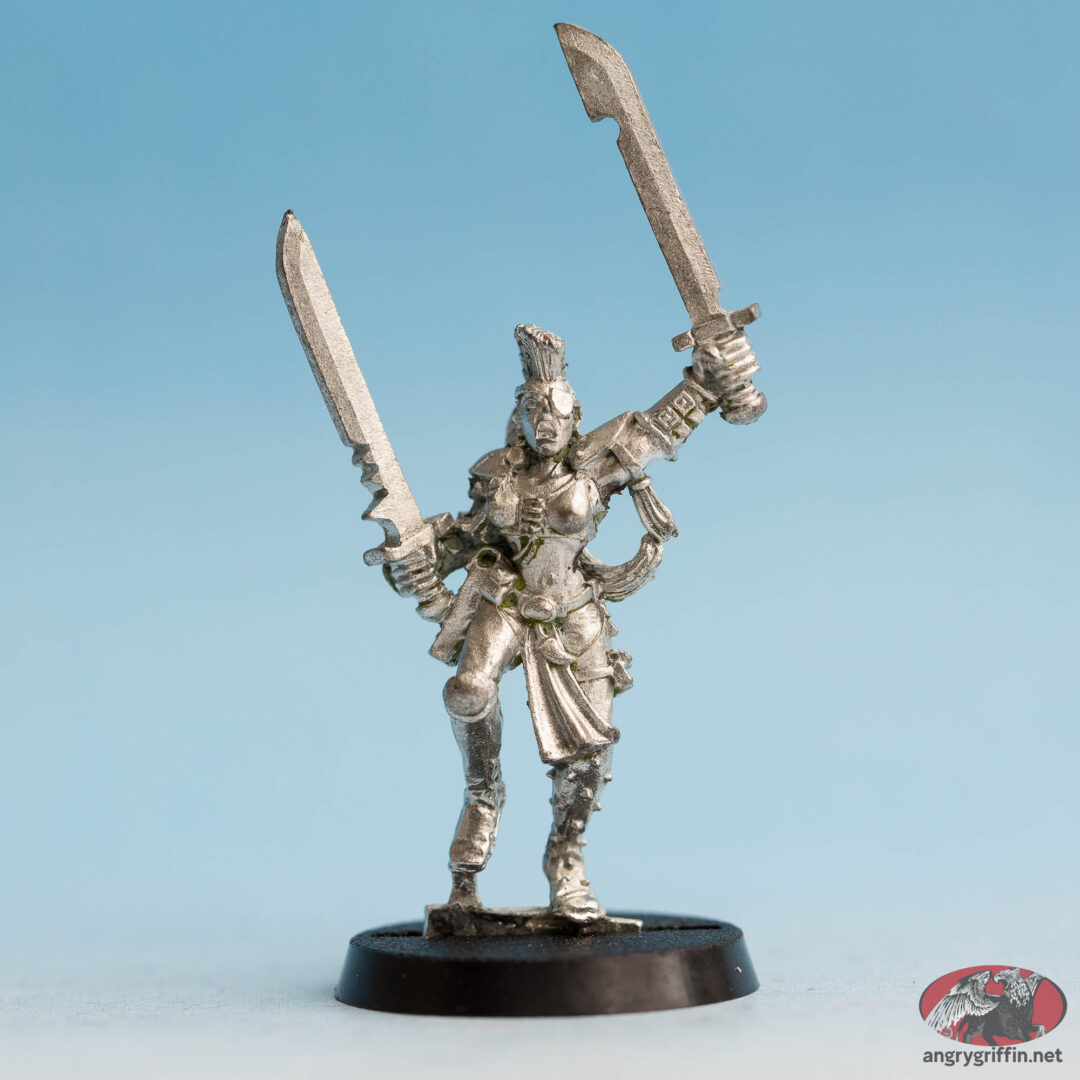 Metal Necromunda Escher Ganger with Two Swords This Escher Ganger is a 1995 sculpt by Jes Goodwin. She was part number 72920/24. Tags: 1995, Sculptor: Jes Goodwin