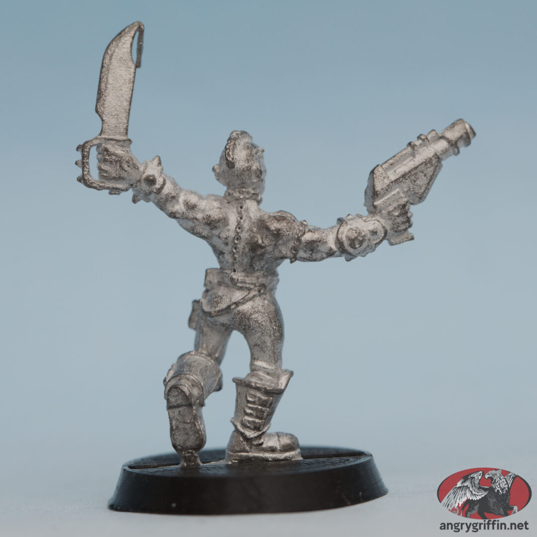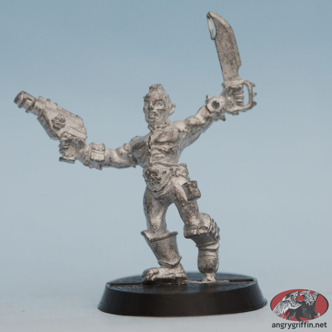 Metal Necromunda Juve with Laspistol This is one of two Goliath Juves which did not come in the gang box. It was a 1995 Gary Morley sculpt for Necromunda. Tags: 1995, Sculptor: Gary Morley