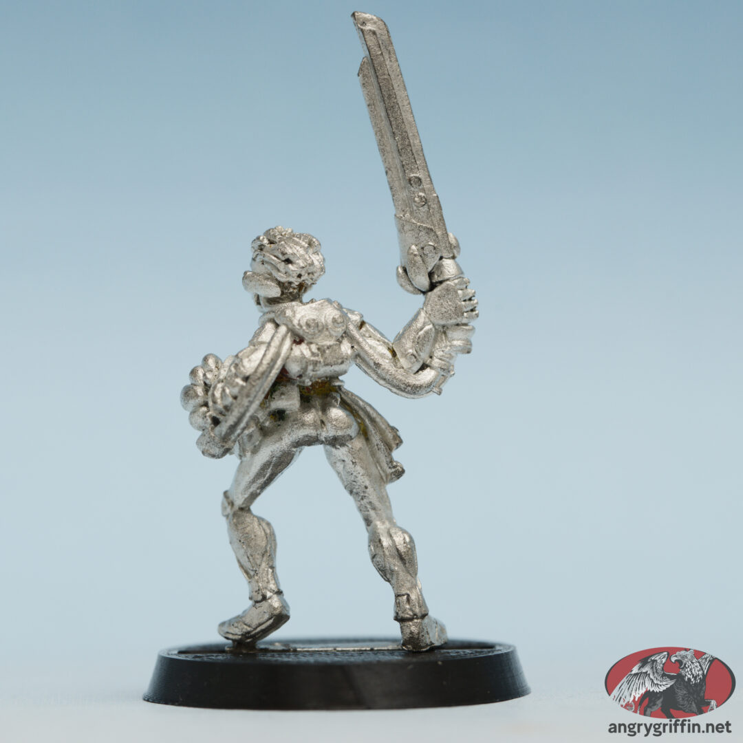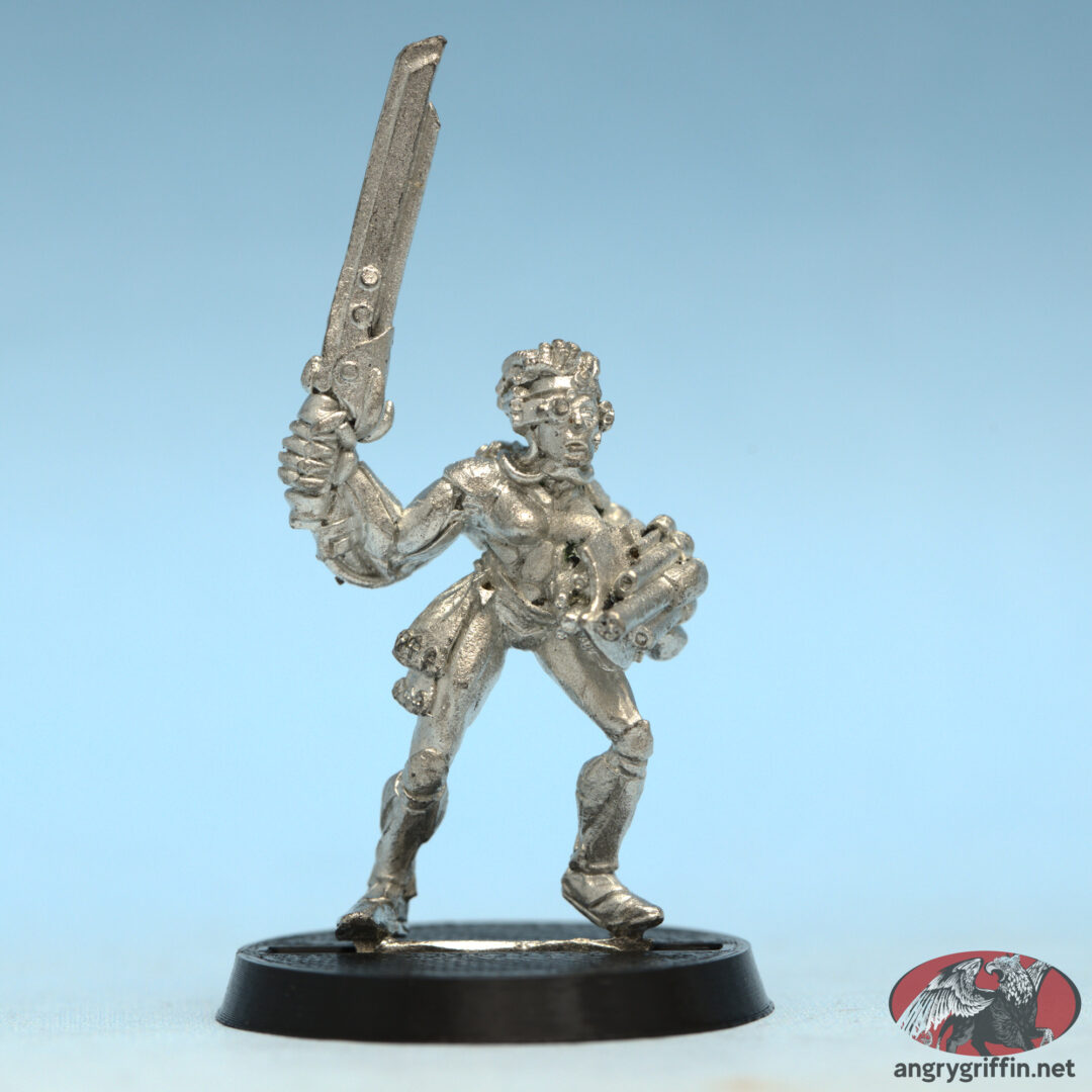 This metal Necromunda Spyre Hunter was “Jakara 2”. It was sculpted in 1995 by Aly Morrison.