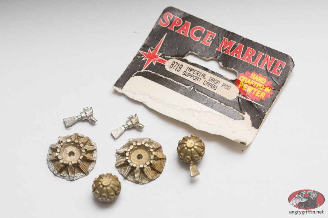 Vintage Space Marine Epic Scale stuff. This drop pod is shown in the 1991 Blue catalogue page listed as being designed by “The Citadel Design Team and Colin Dixon” – so who it was that had left by then I don’t know and I’m not sure whether they or Colin sculpted this one!