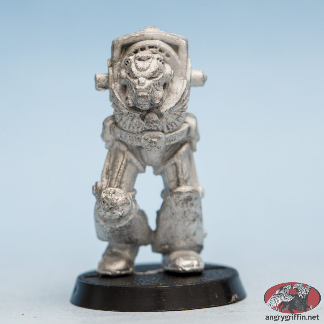 This metal Space Marine Terminator is “Marine 3” in the 1991 Blue catalogue and is part number RTB9/3 there.