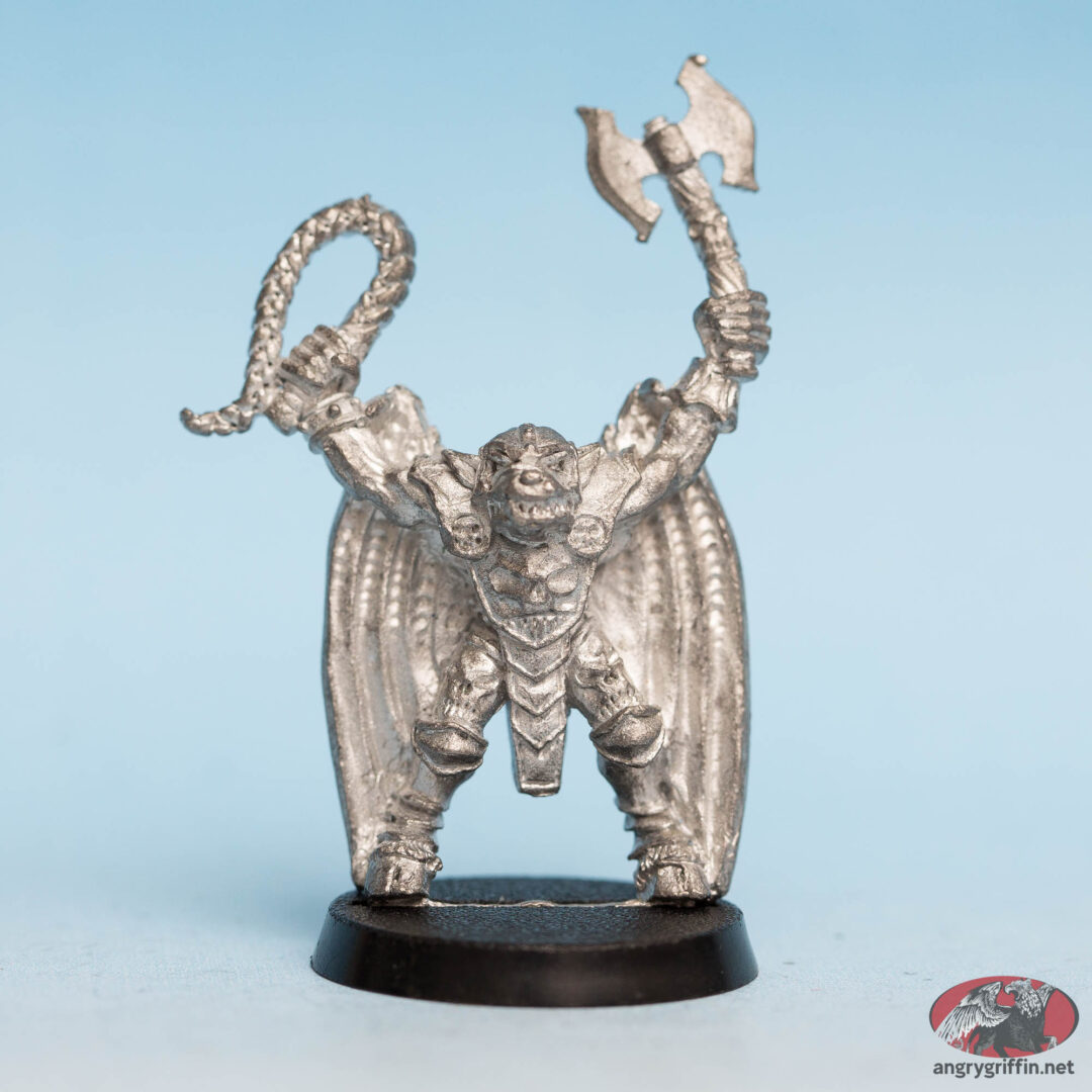 This metal miniature was a Bloodthirster Daemon of Khorne for Epic scale Warhammer 40K.