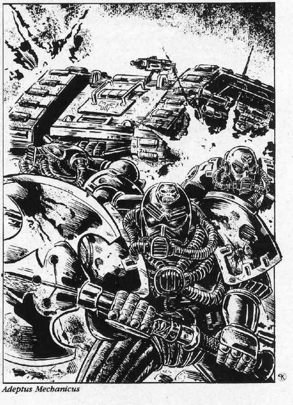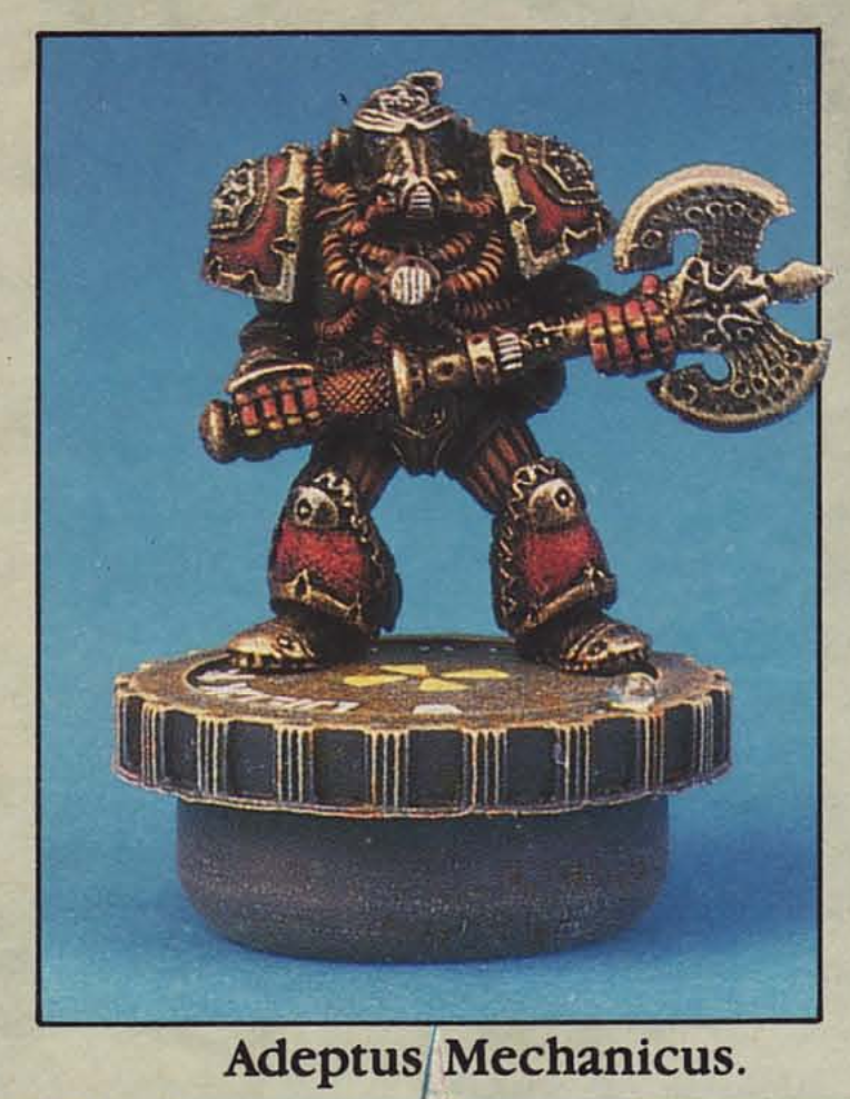 This metal Rogue Trader miniature was one of the original Mechanicus sculpts by Bob Olley. I can’t make out the year on the back of the tab. He goes by 401101 or 051301.