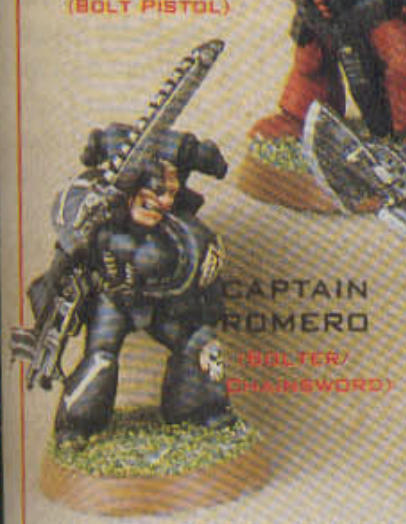 This is Captain Romero from the Rogue Trader era. He was later shown in the catalogues as Chain Sword and Bolter 070119/29 and is also seen in White Dwarf 99 (March 1988).