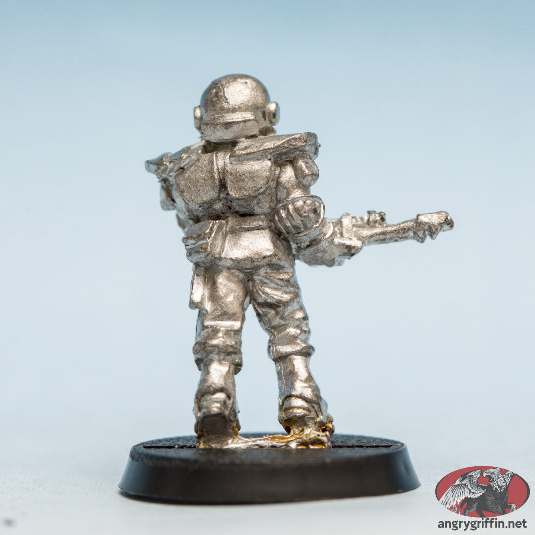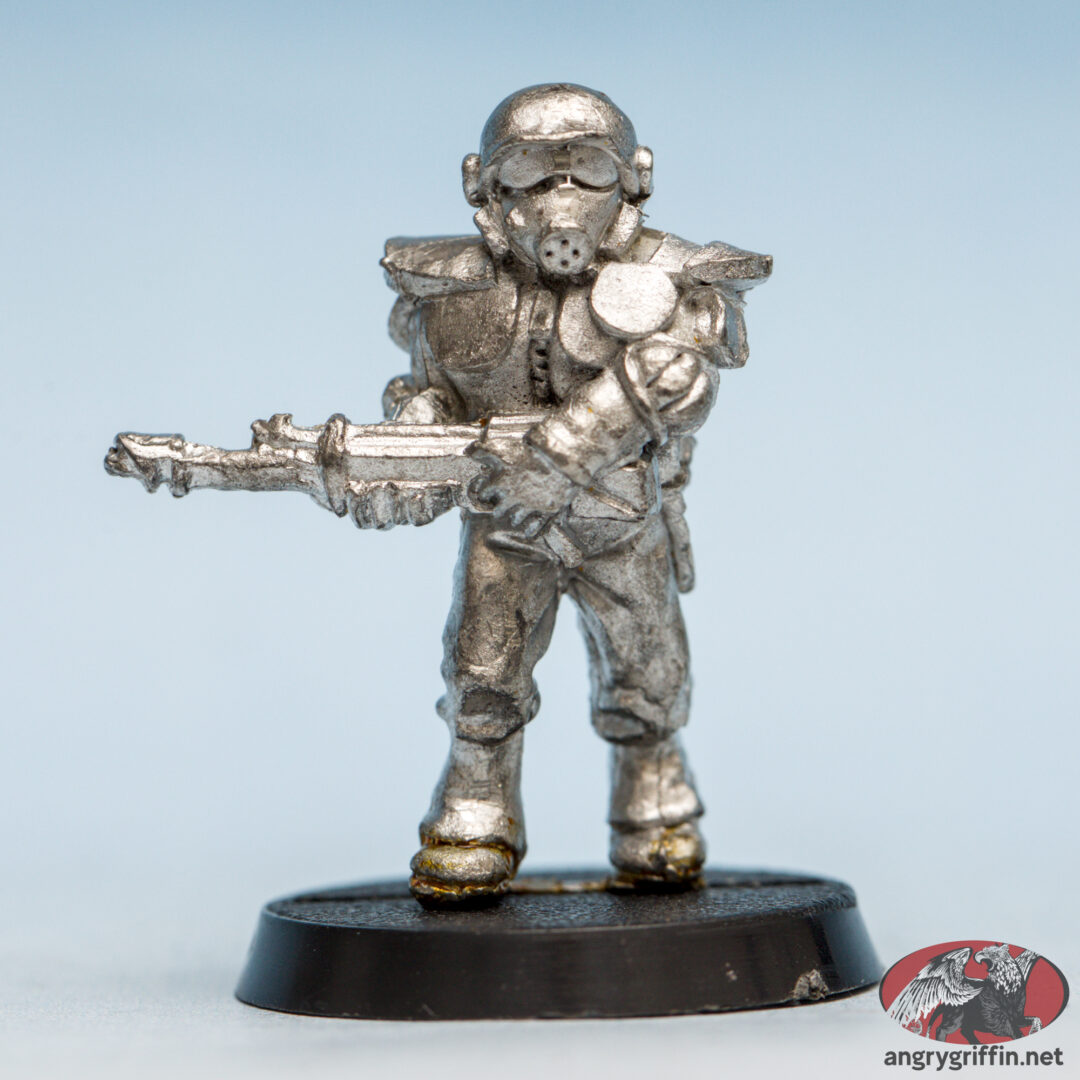 Imperial Army Trooper Lee. Shown on a page where minis were designed by Aly Morrison, Michael Perry and Alan Perry. No idea which fellow did it.
