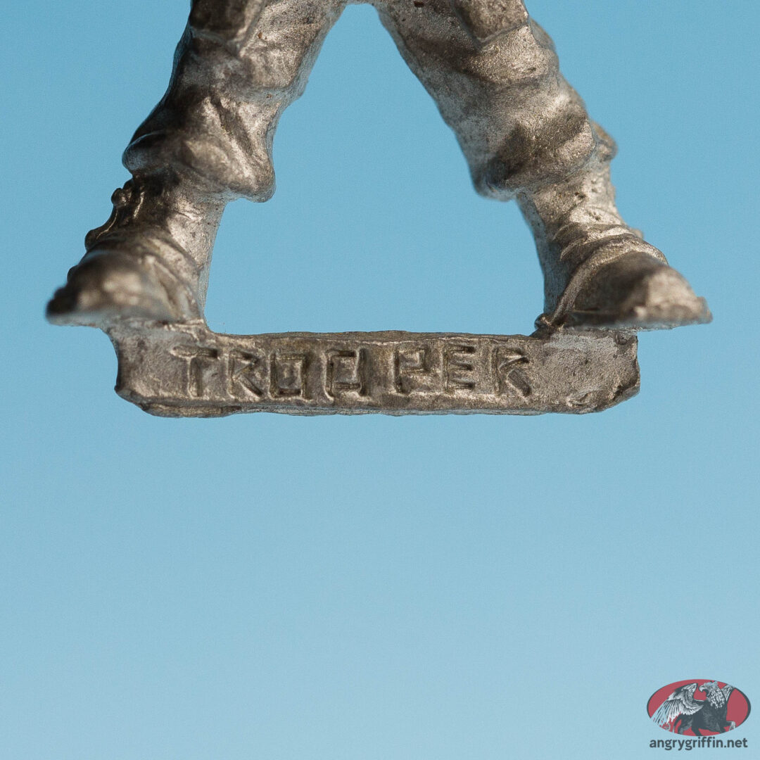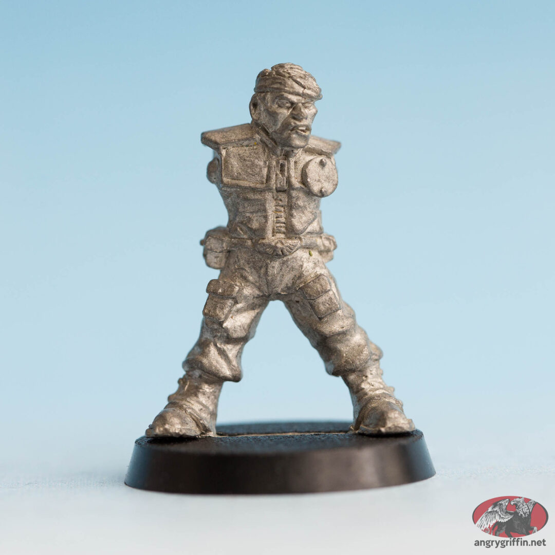 This Imperial Guard wounded miniature is a Mark Copplestone sculpt from 1989. He can be found in the 1989 catalogue as 401111 and can be seen in White Dwarf 112: