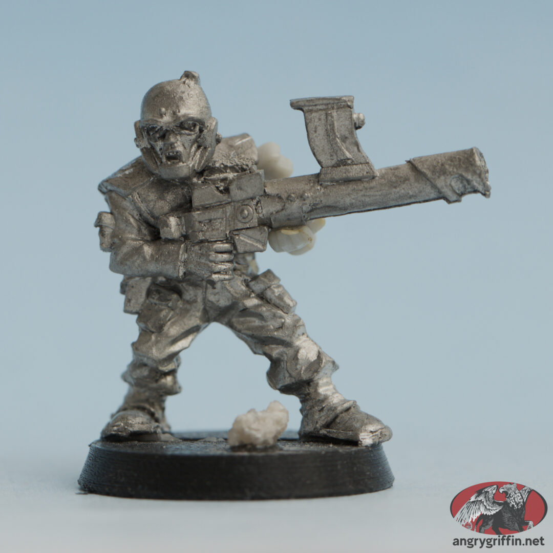 This metal Imperial Guardsman was from the Rogue Trader period of Warhammer 40K.