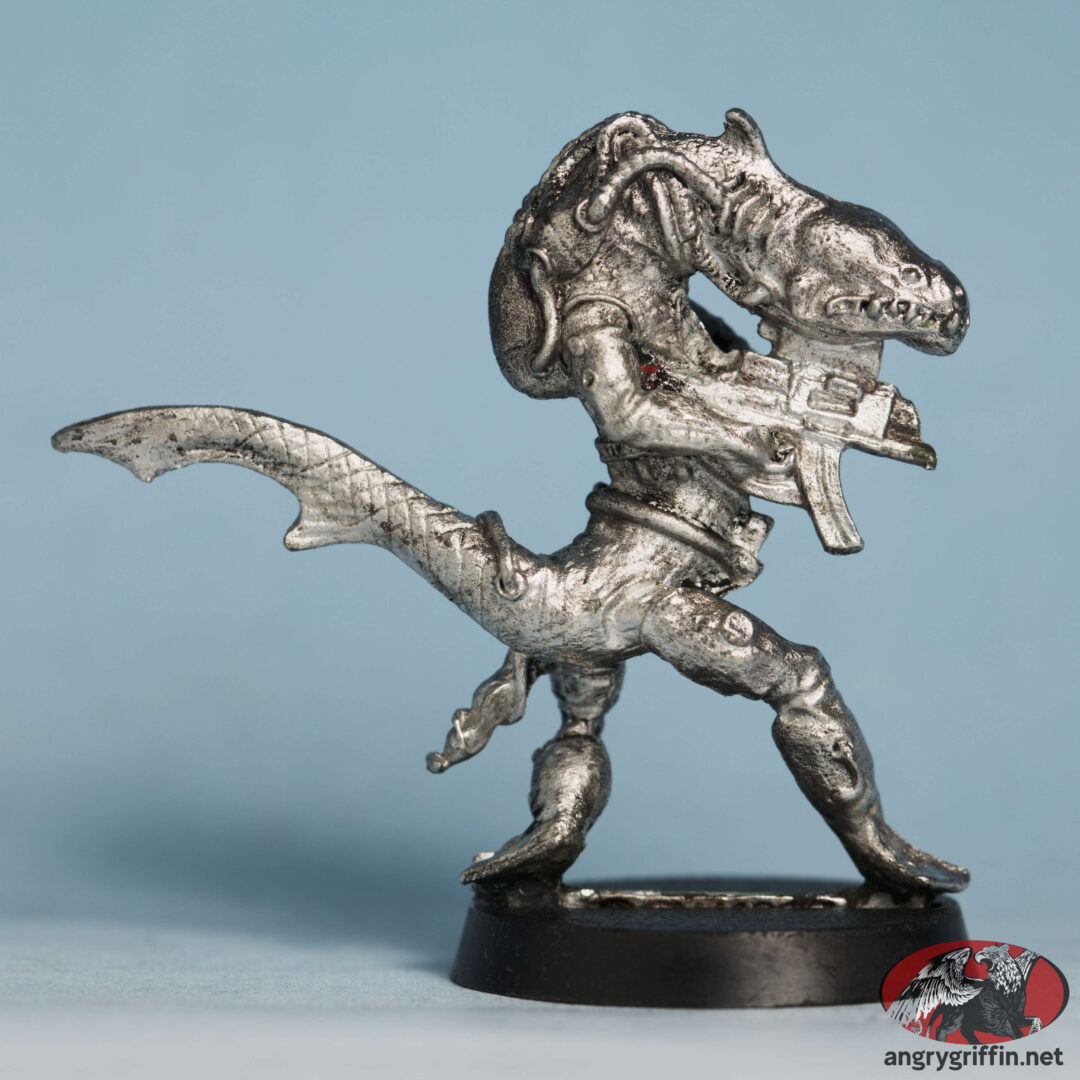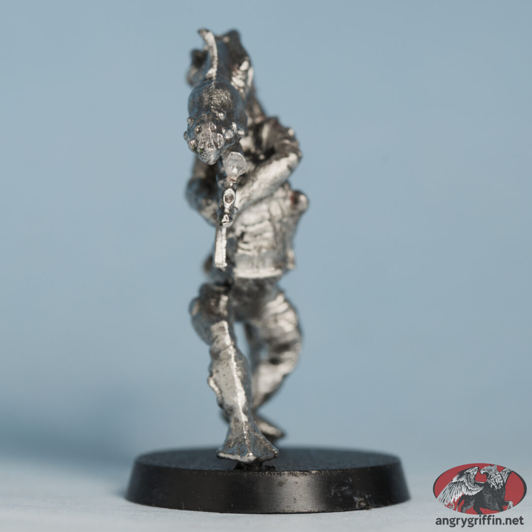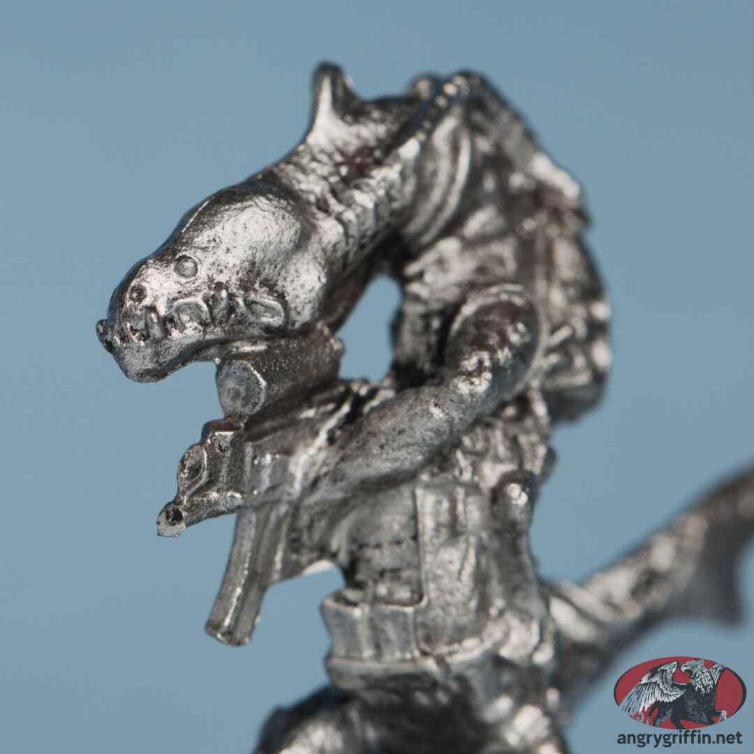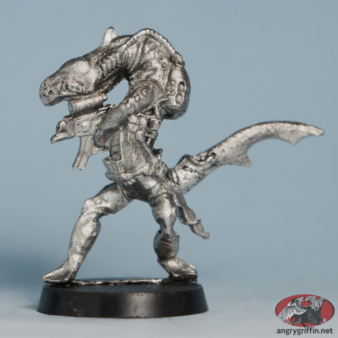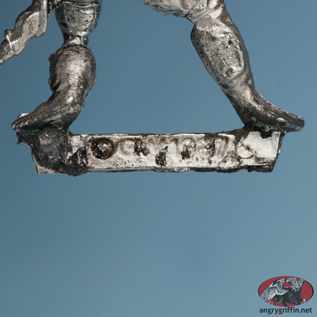 This metal Warhammer 40K miniature was one of the first Rogue Trader releases. It is described as a “Piscean Warrior” in the flyer. I don’t have a sculpting credit for it but it does have 1987 on the base, along with “Sahuagin”.