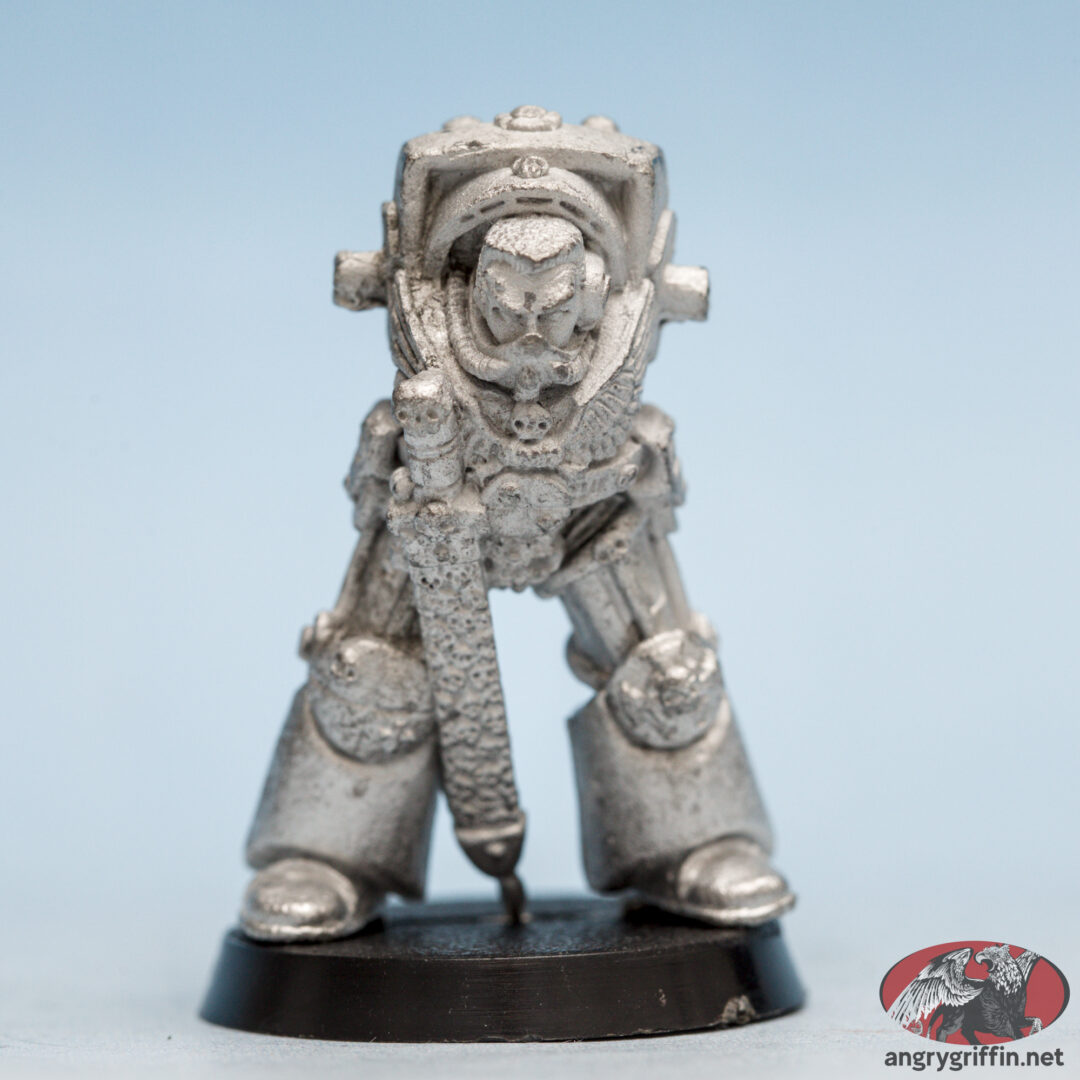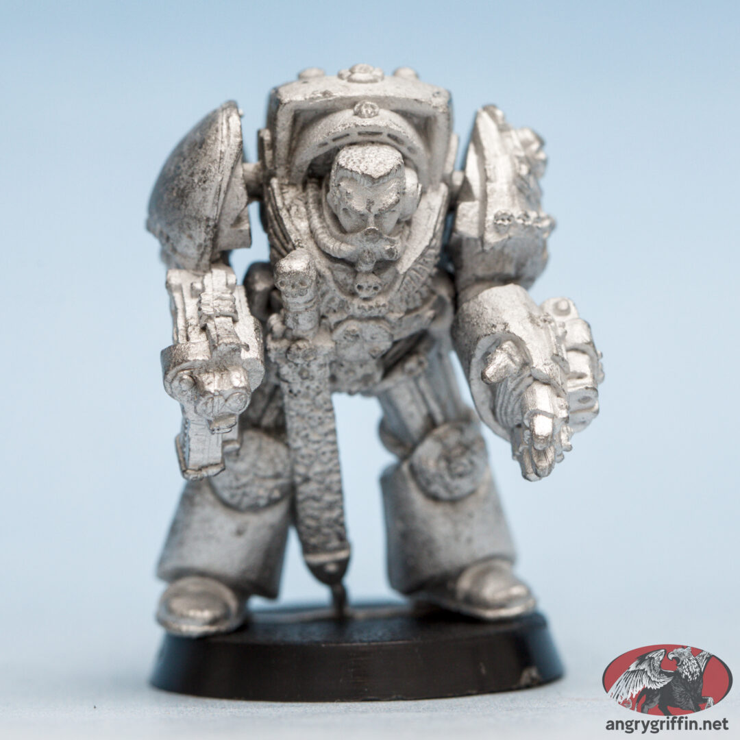 This metal Space Marine Terminator came in the RTB09 box set. He’s the Captain with Storm Bolter, Powerglove with Grenade Launcher and Force Sword.