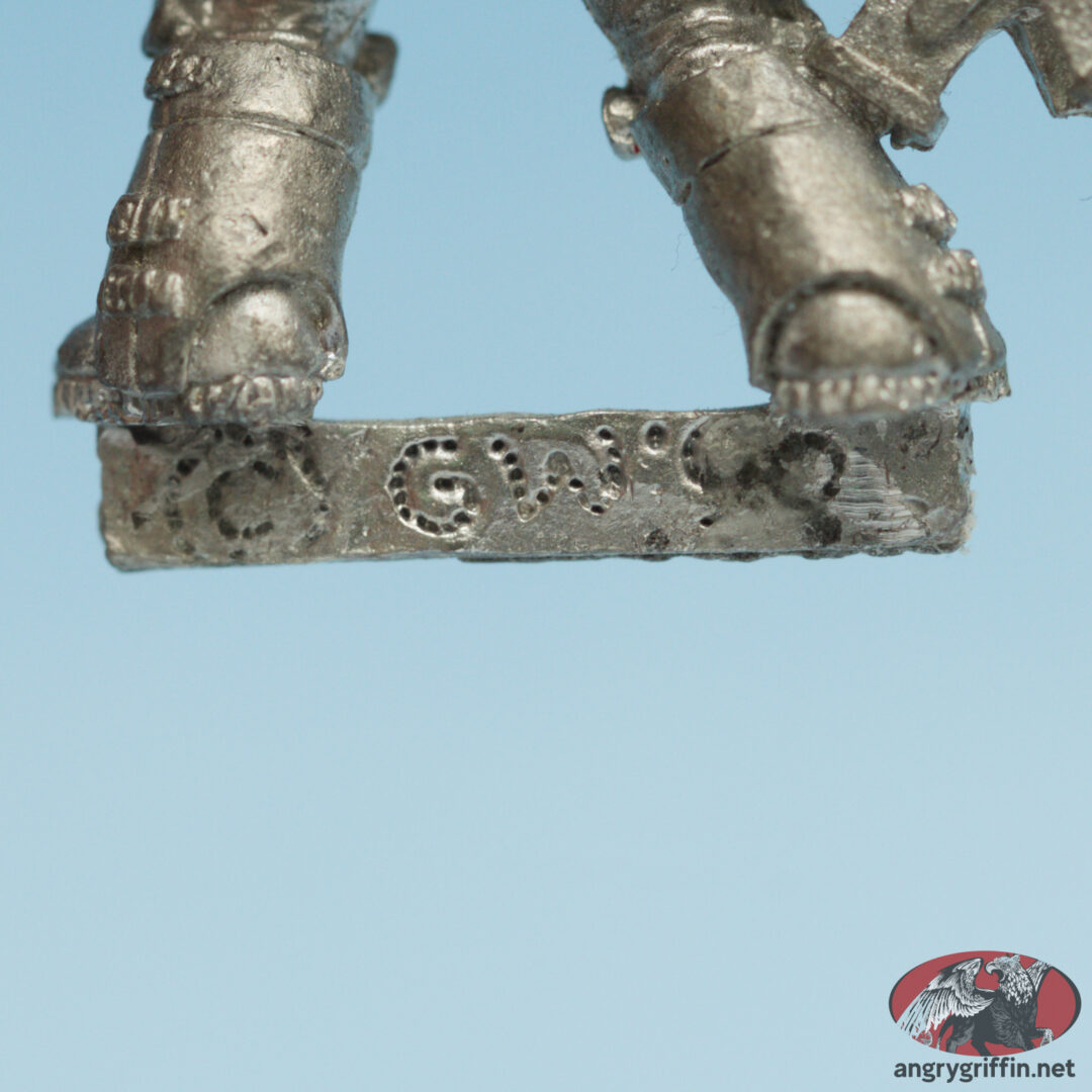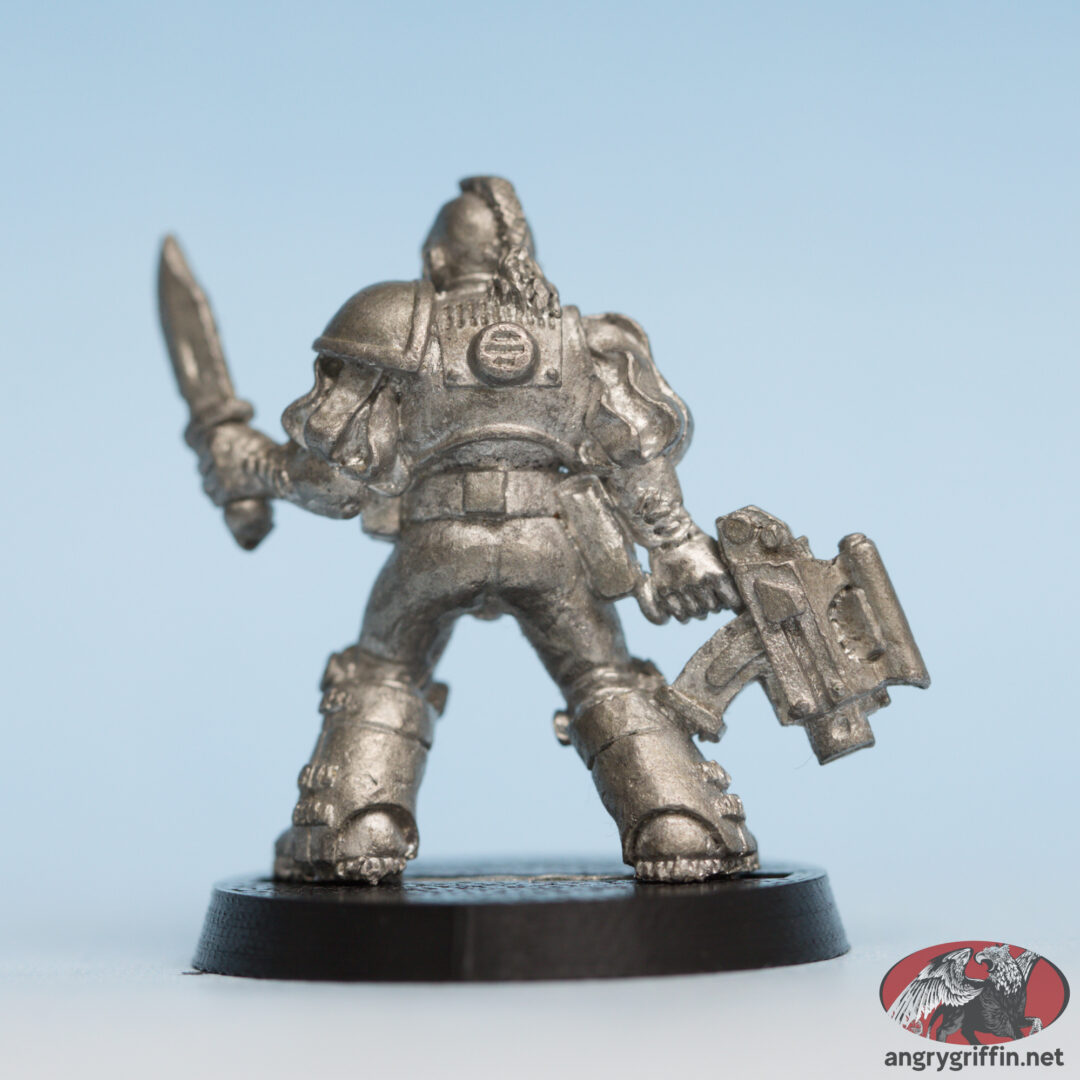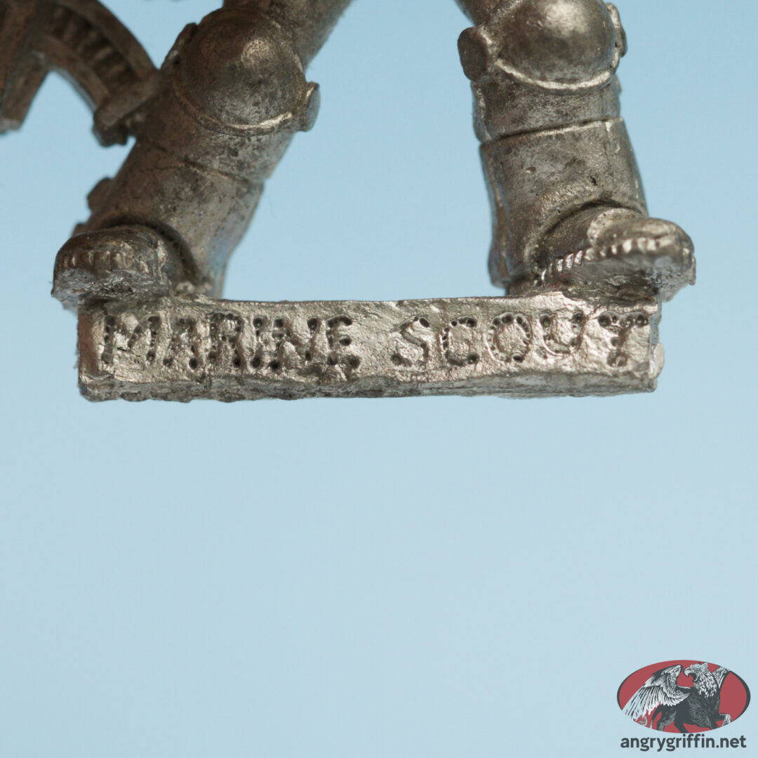 This metal Rogue Trader-era Space Marine Scout went by part number 070295/2 in the 1991 Blue catalogue. He’s missing his knife.