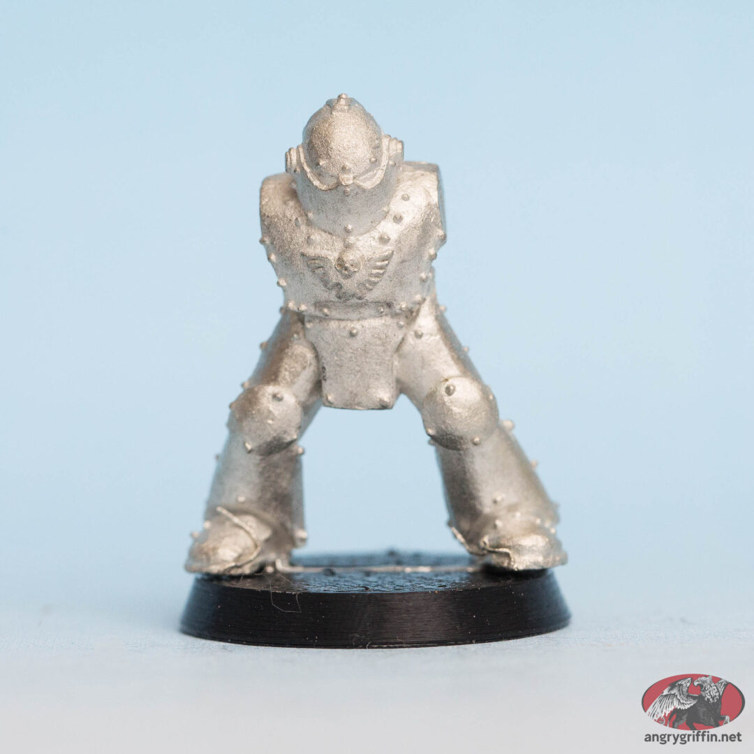 Games Workshop had been testing out the general appearance of what were to be Space Marines years prior to Rogue Trader’s release in 1987 – see the C100 Imperial Marines and LE2 Imperial Space Marine releases. That aesthetic morphed into the first official Warhammer 40K Space Marines releases.
