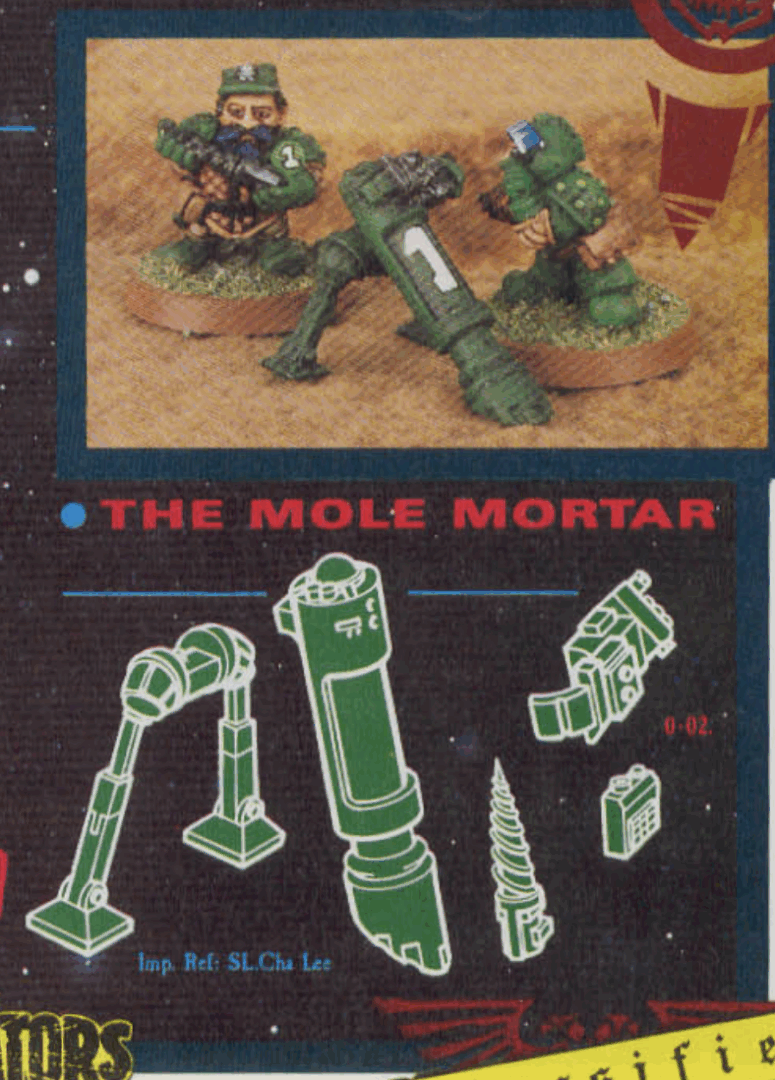 Rogue Trader Squat Mole Mortar and Operator Warhammer 40K Metal This was part of the RTB3 Devastators box set and also sold separately. Designed by Michael and Alan Perry. As seen in WD99: Tags: 1987, Sculptor: Michael and Alan Perry, WD99