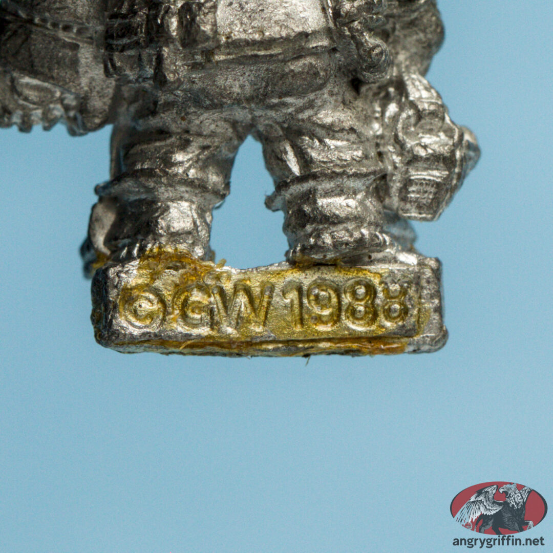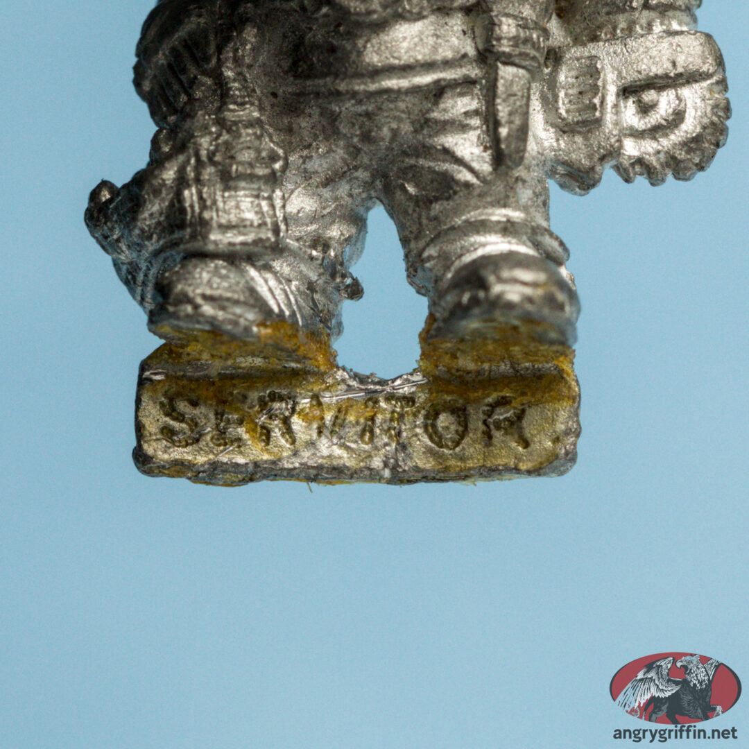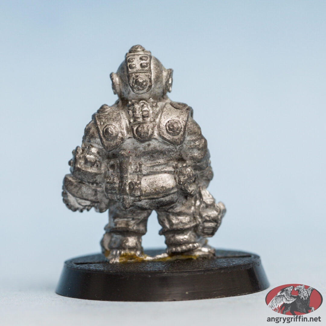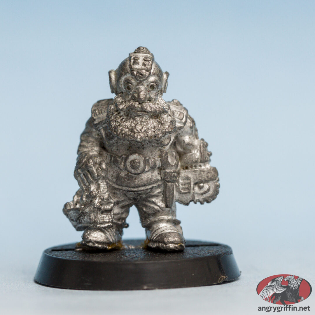 This metal Warhammer 40K Rogue Trader miniature is a Squat Servitor. It was a 1988 Bob Olley sculpt.