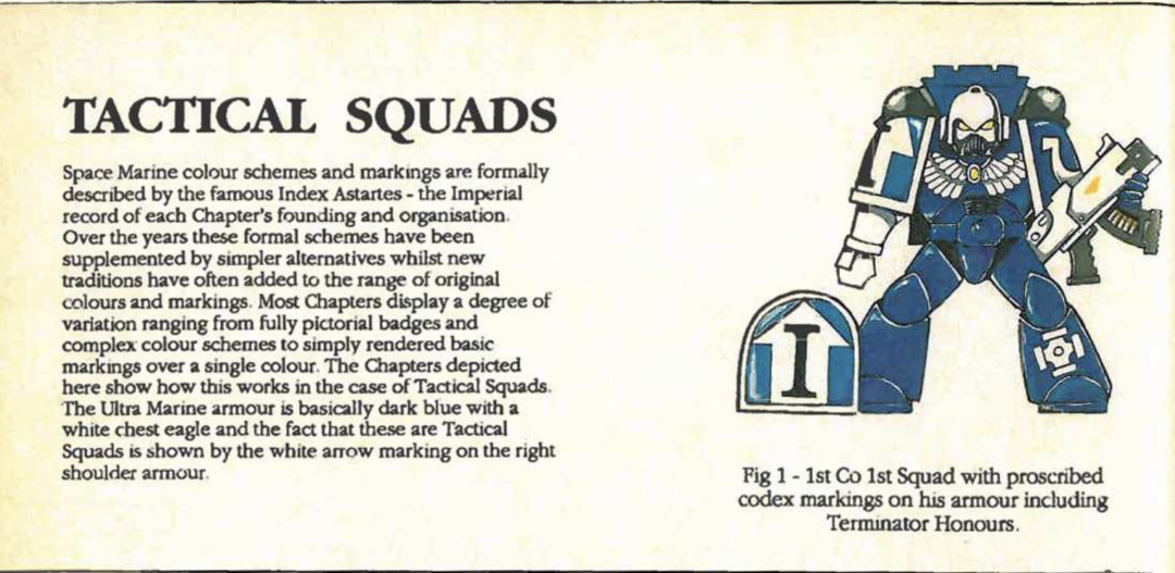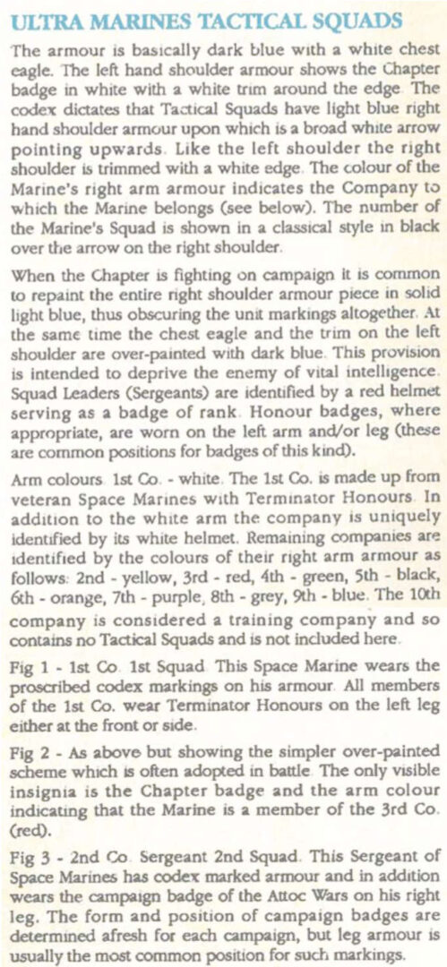 Here is what I can find on the official Ultramarines paint schemes from the Rogue Trader era.