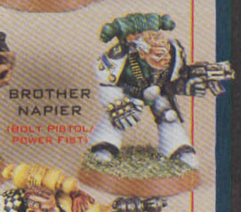 This guy is shown as Brother Napier in the early flyers and is part number 070119/33 (Bolt Pistol/Power Fist) in the later catalogues.