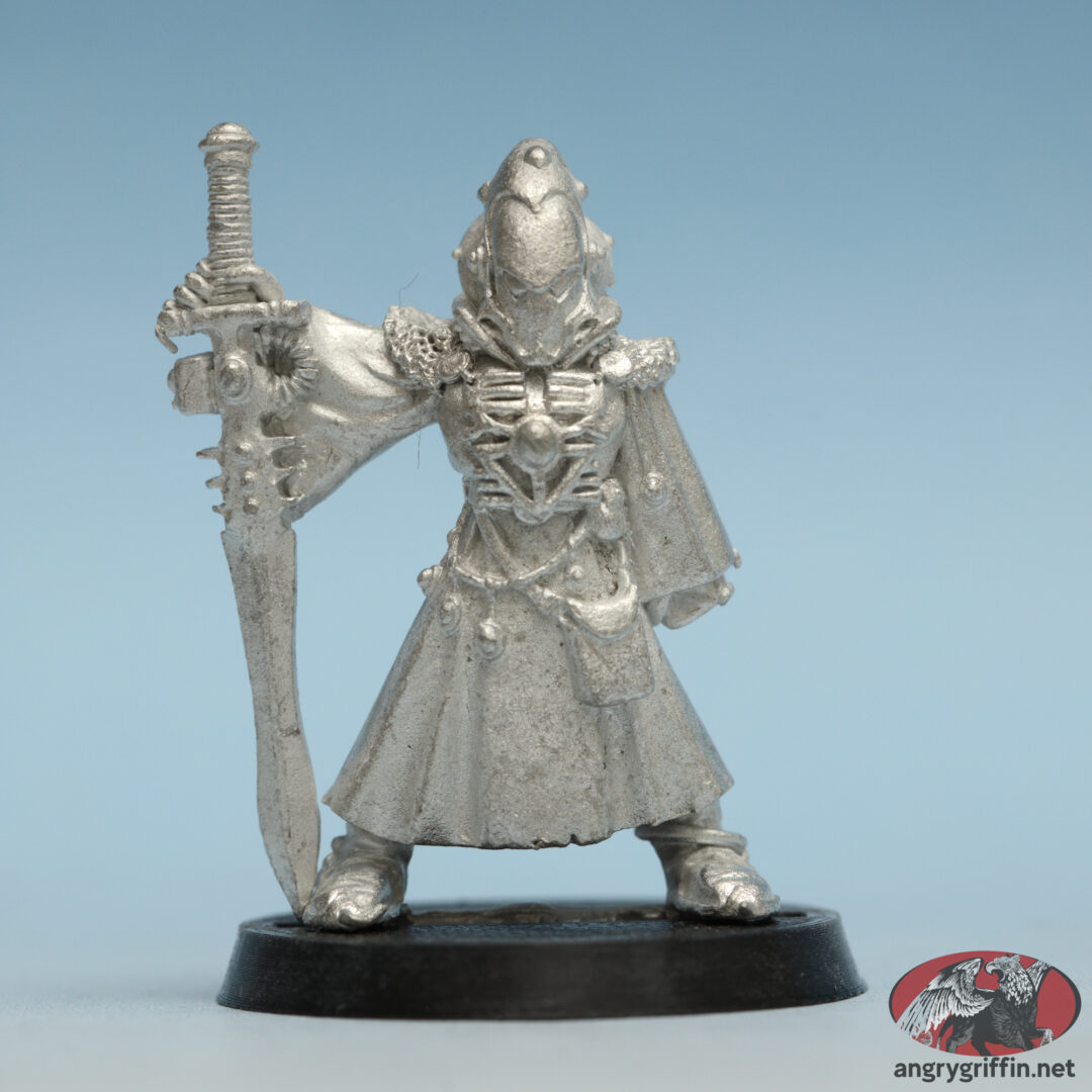 This metal Eldar Warhammer 40K Rogue Trader miniature was shown in the 1991 Blue catalogue. It’s a 1990 Jes Goodwin sculpt.