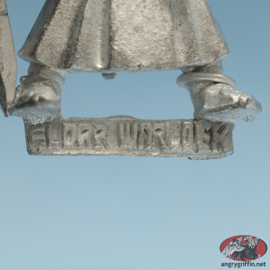 It has “ELDAR WARLOCK” on the front of the tab and GW 1990 on the rear.