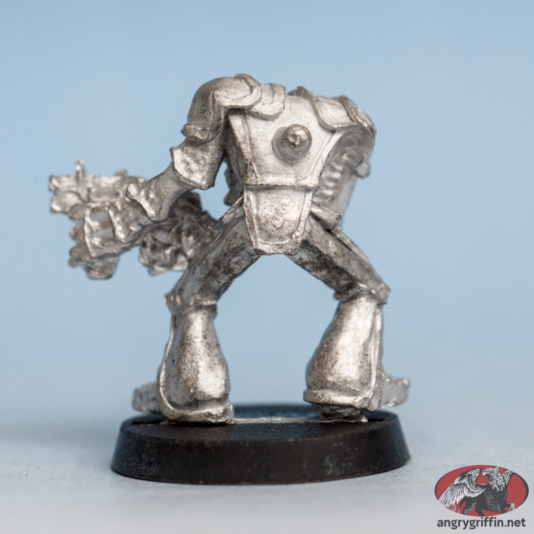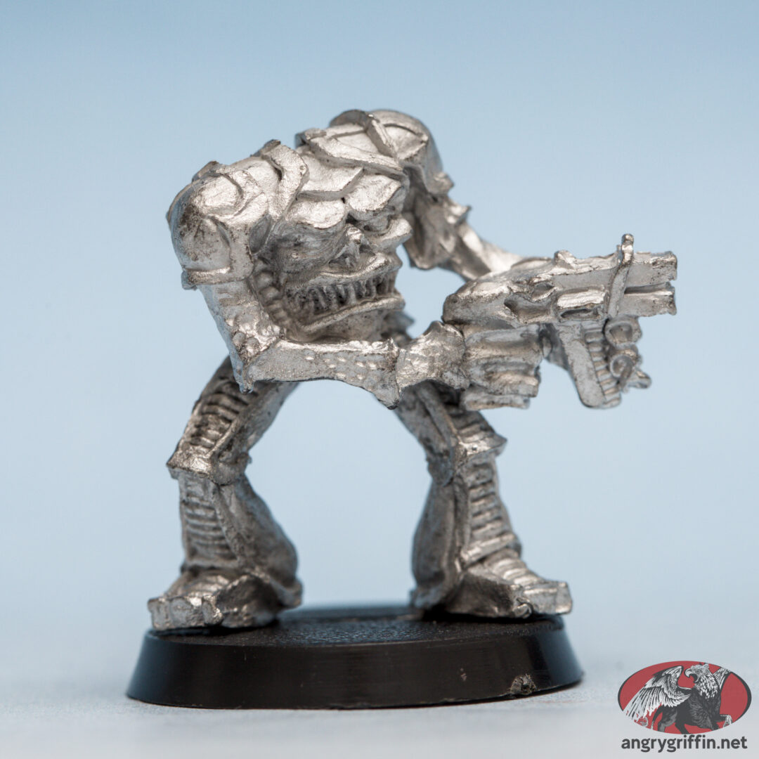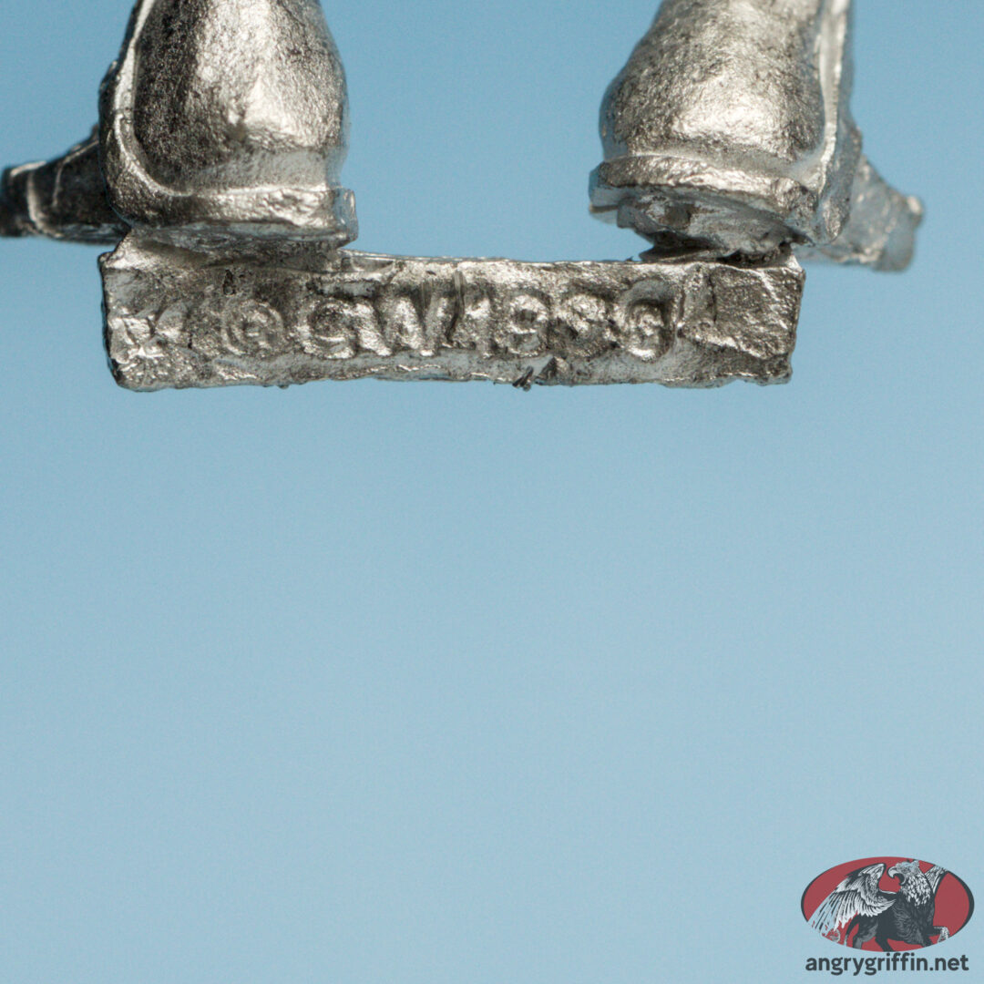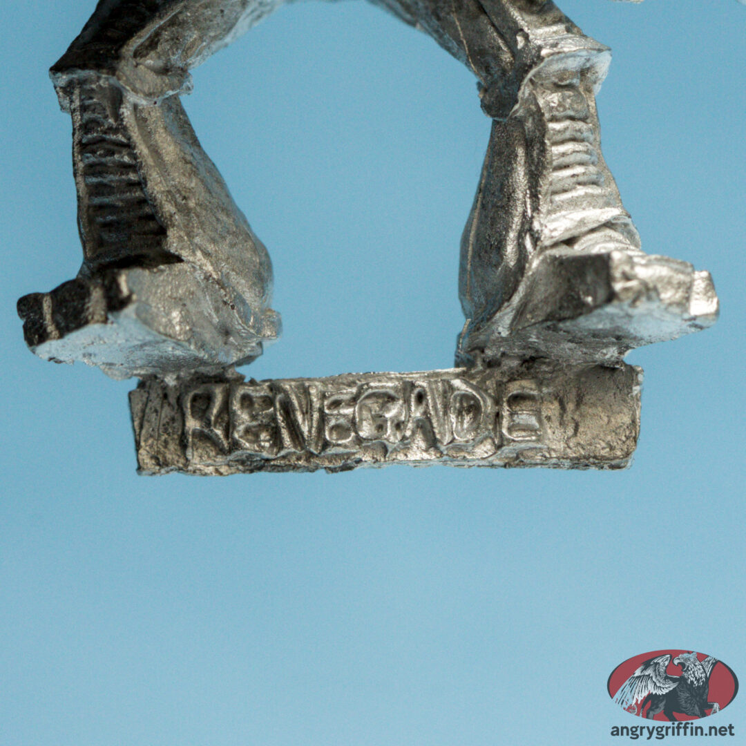 This metal Rogue Trader-era Chaos Space Marine Renegade was called “Headless 2” in the 1991 Blue catalogue, part number 070366/8. It was sculpted by Michael Perry in 1988.