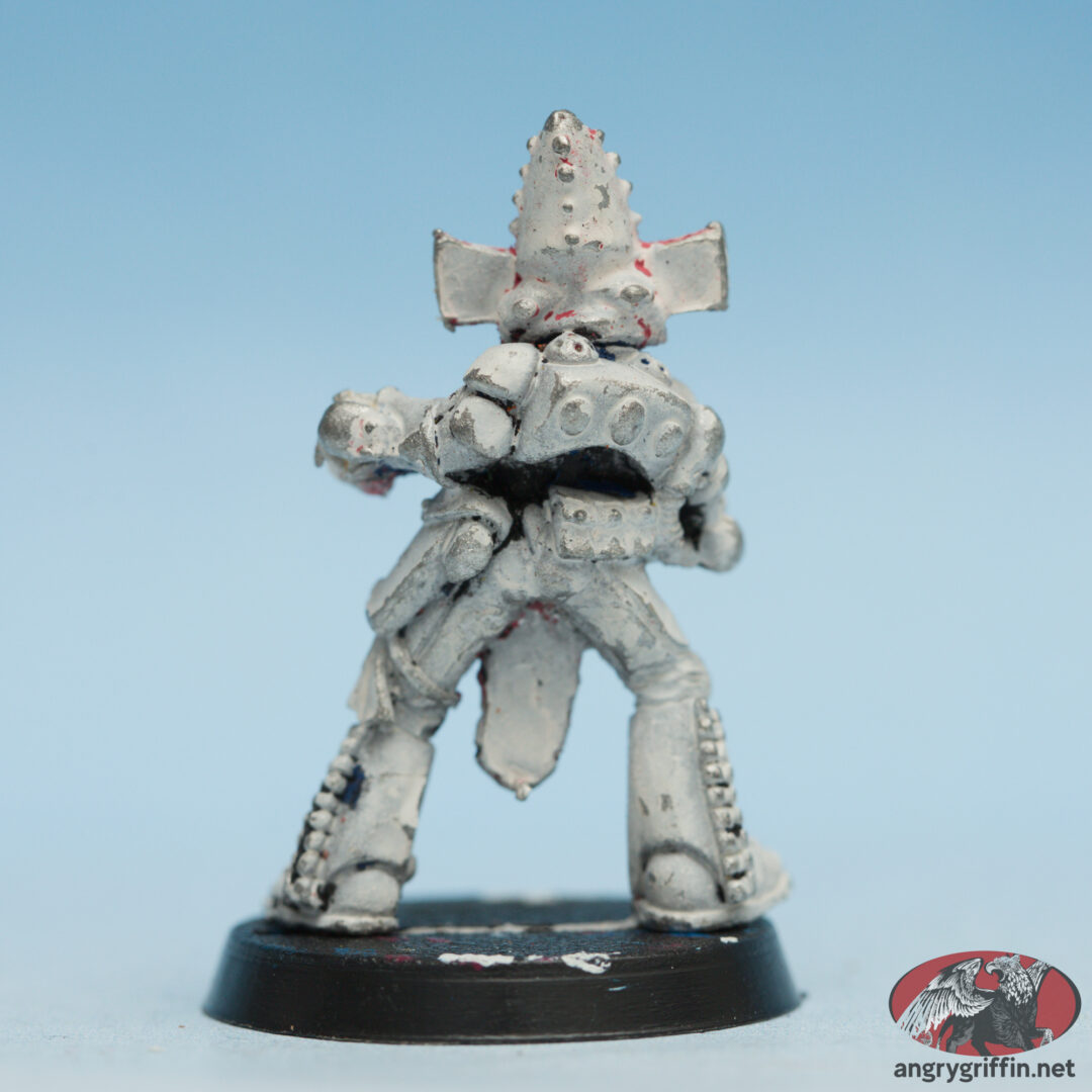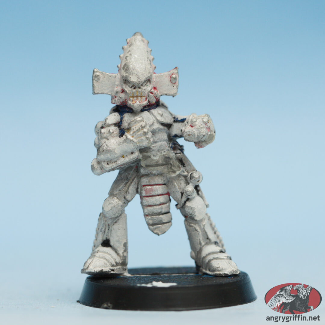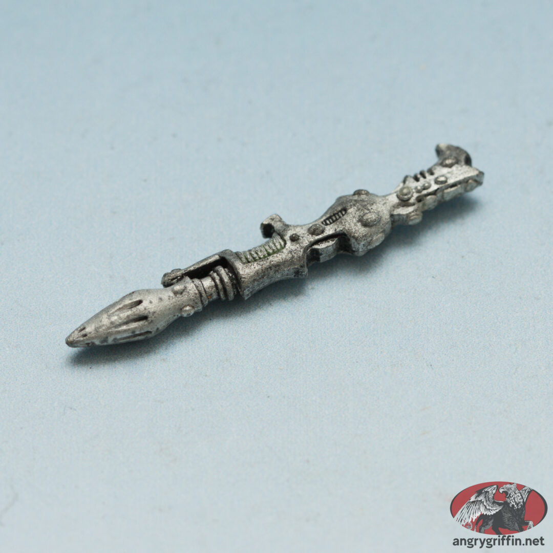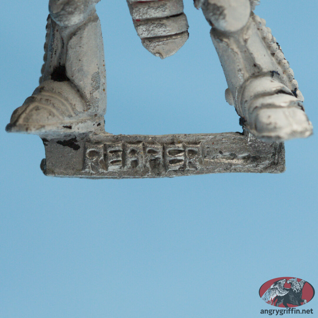 This metal Rogue Trader-era Eldar Dark Reaper was a 1991 Jes Goodwin sculpt. In the 1991 Blue catalogue it appears as part number 071560/7.