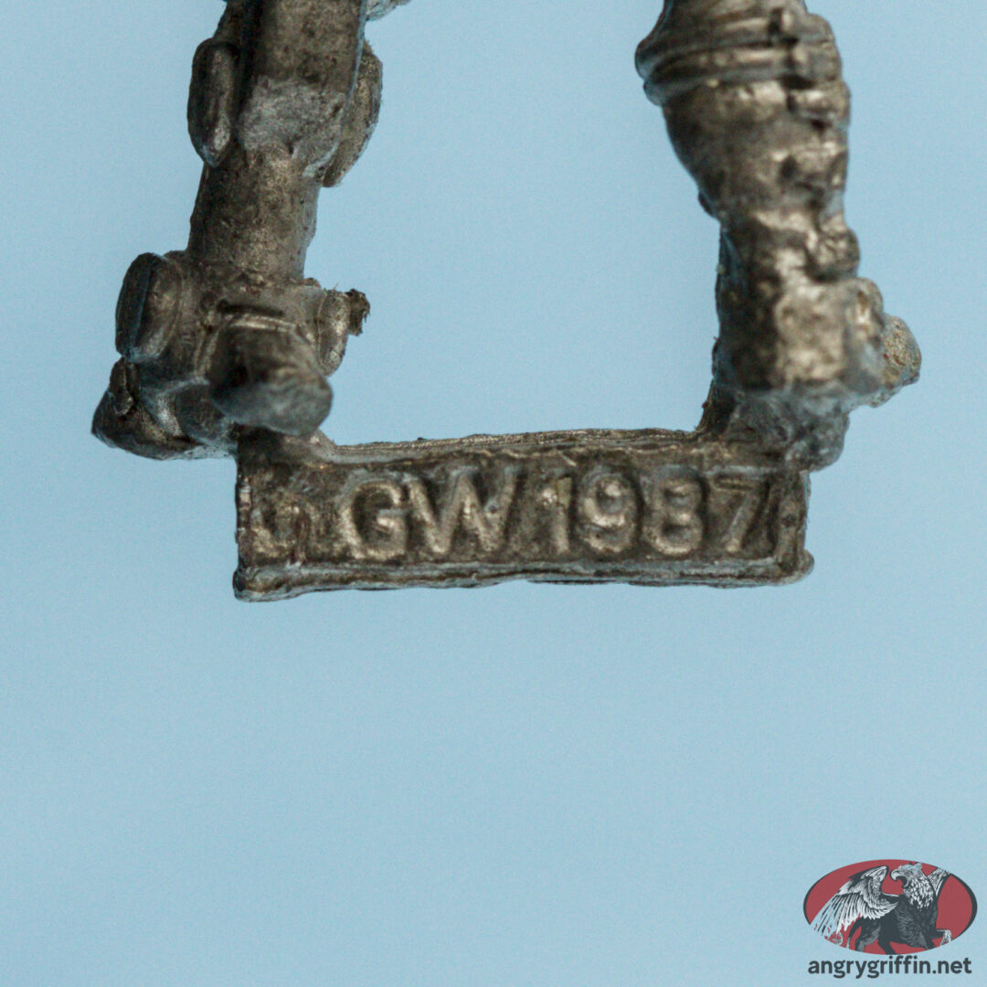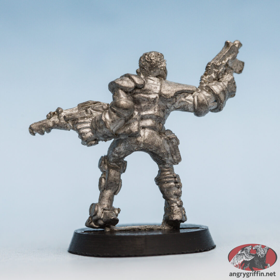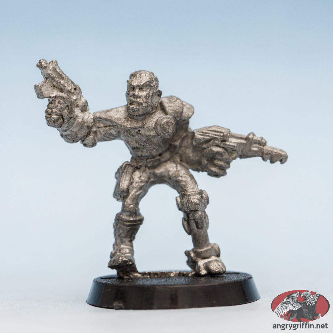 This metal Rogue Trader-era Imperial Army (later Imperial Guard) miniature went by Captain Armstrong. He’s a 1987 Aly Morrison sculpt.