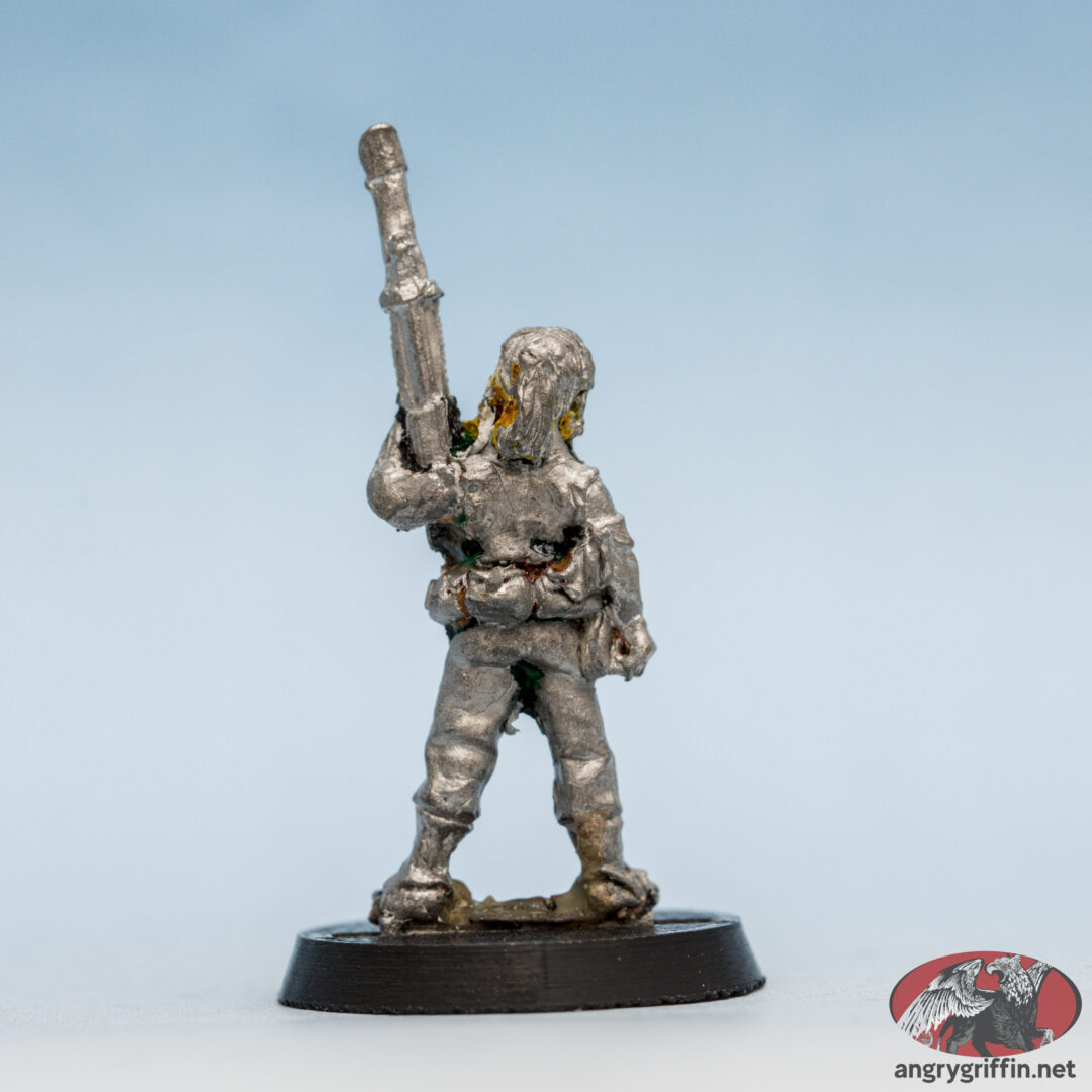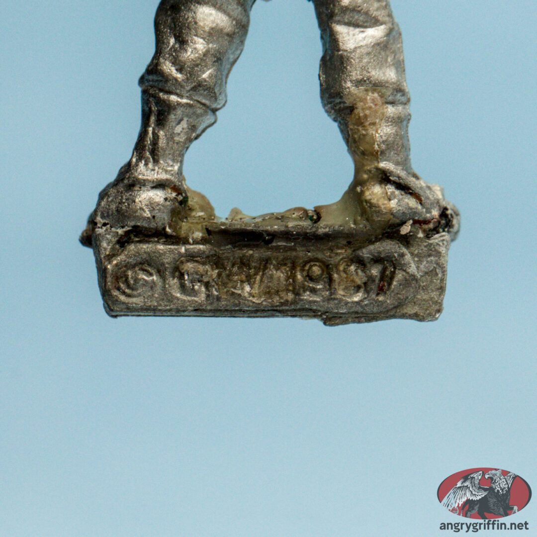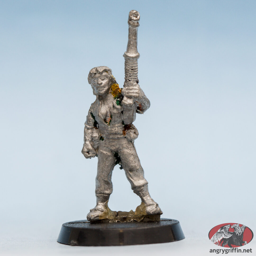 This Rogue Trader era Imperial Army miniature was called Female Trooper Bush. I don’t have a sculpting credit for her, unfortunately. She’s a 1987 sculpt.