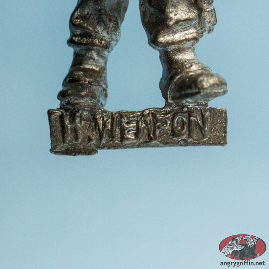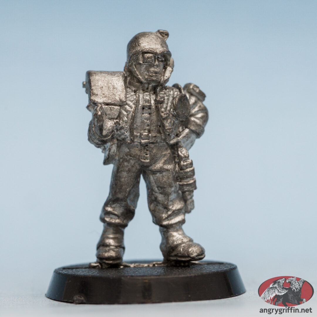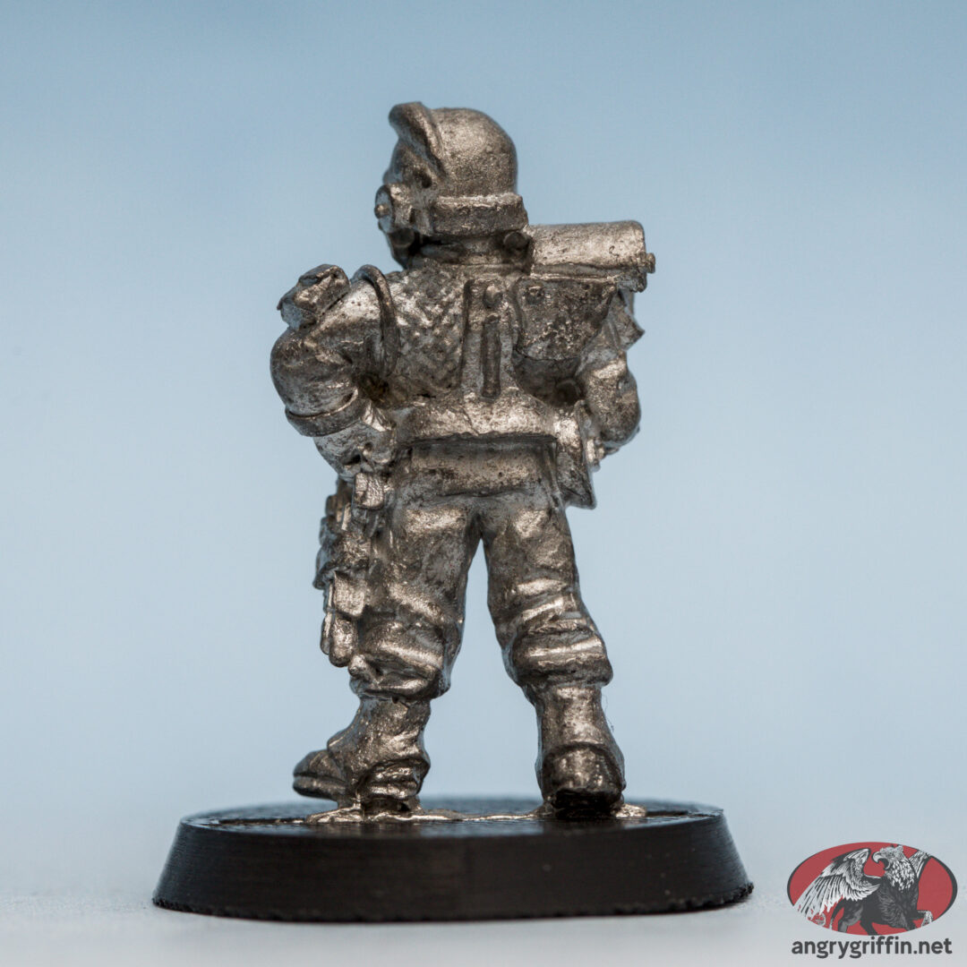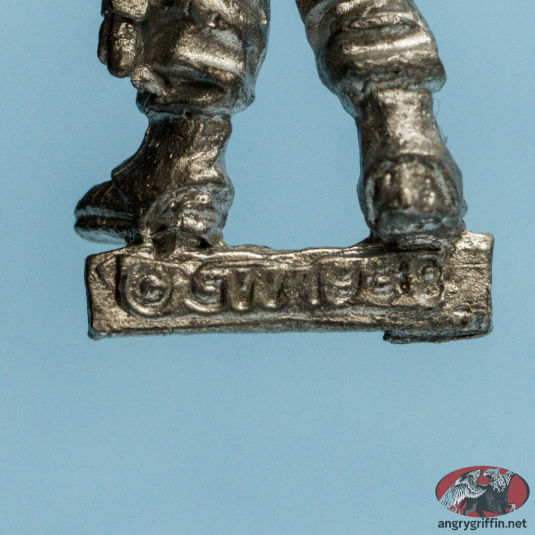 This metal Rogue Trader Imperial Army miniature was one of the Heavy Weapons troopers. I can’t find a sculpting credit. He was a 1988 sculpt according to the tab.