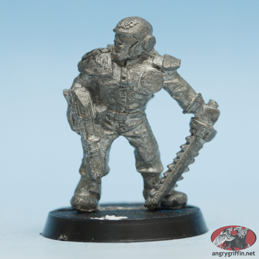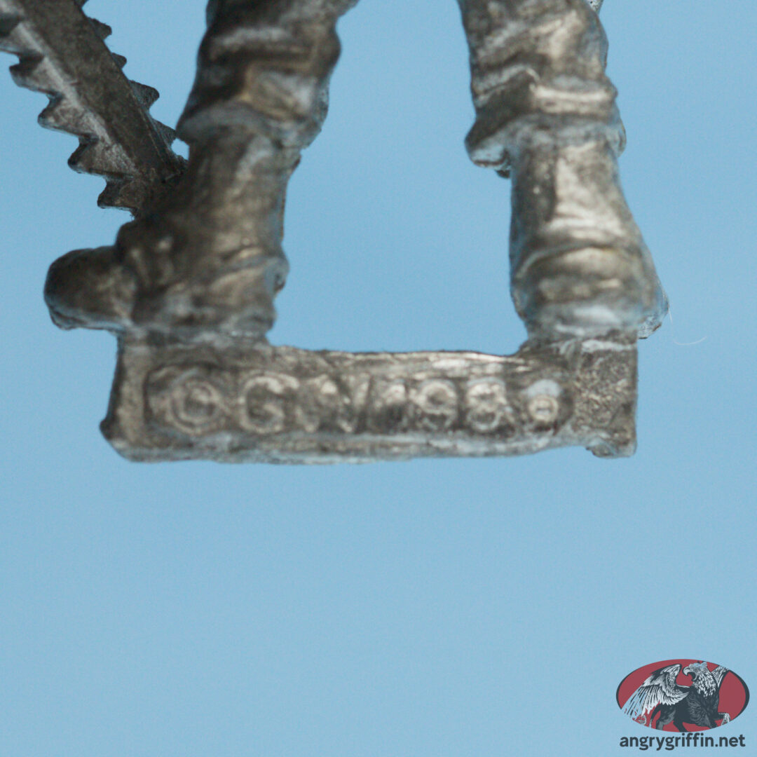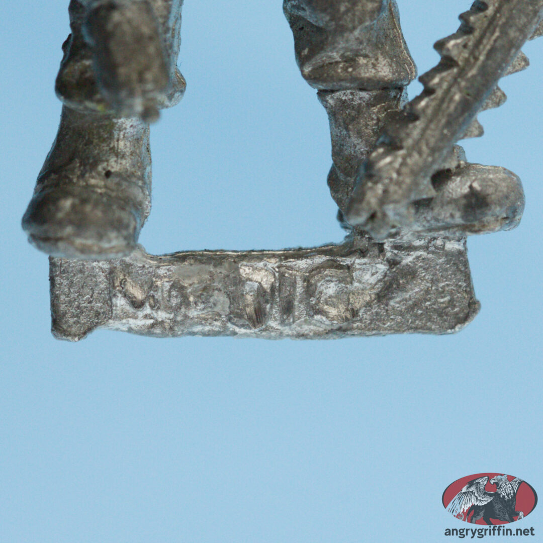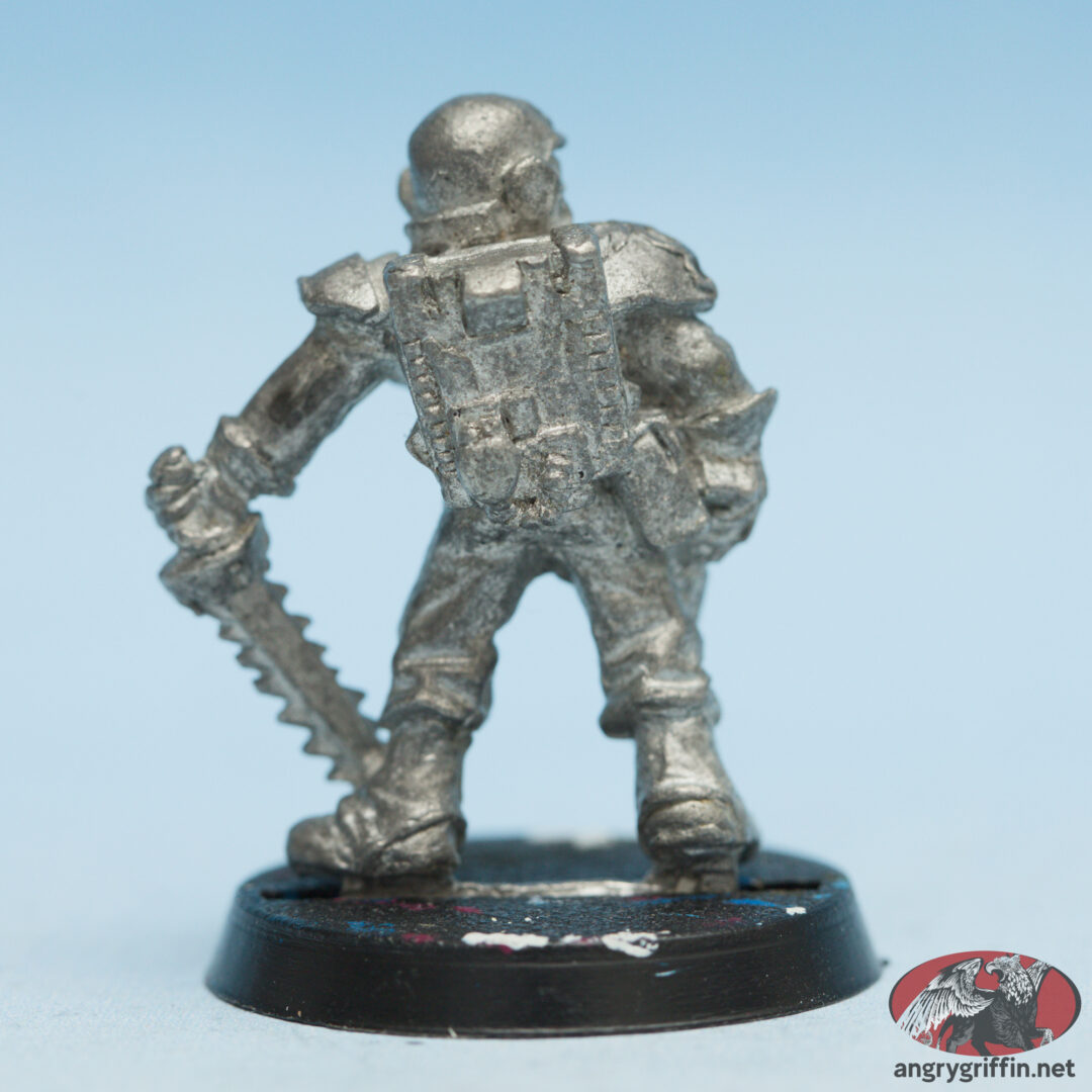 This metal Rogue Trader miniature is one from the Medic RT701 or 4006 range, and was a 1988 sculpt. It was sculpted by either Aly Morrison, Michael Perry, Alan Perry or Mark Copplestone.