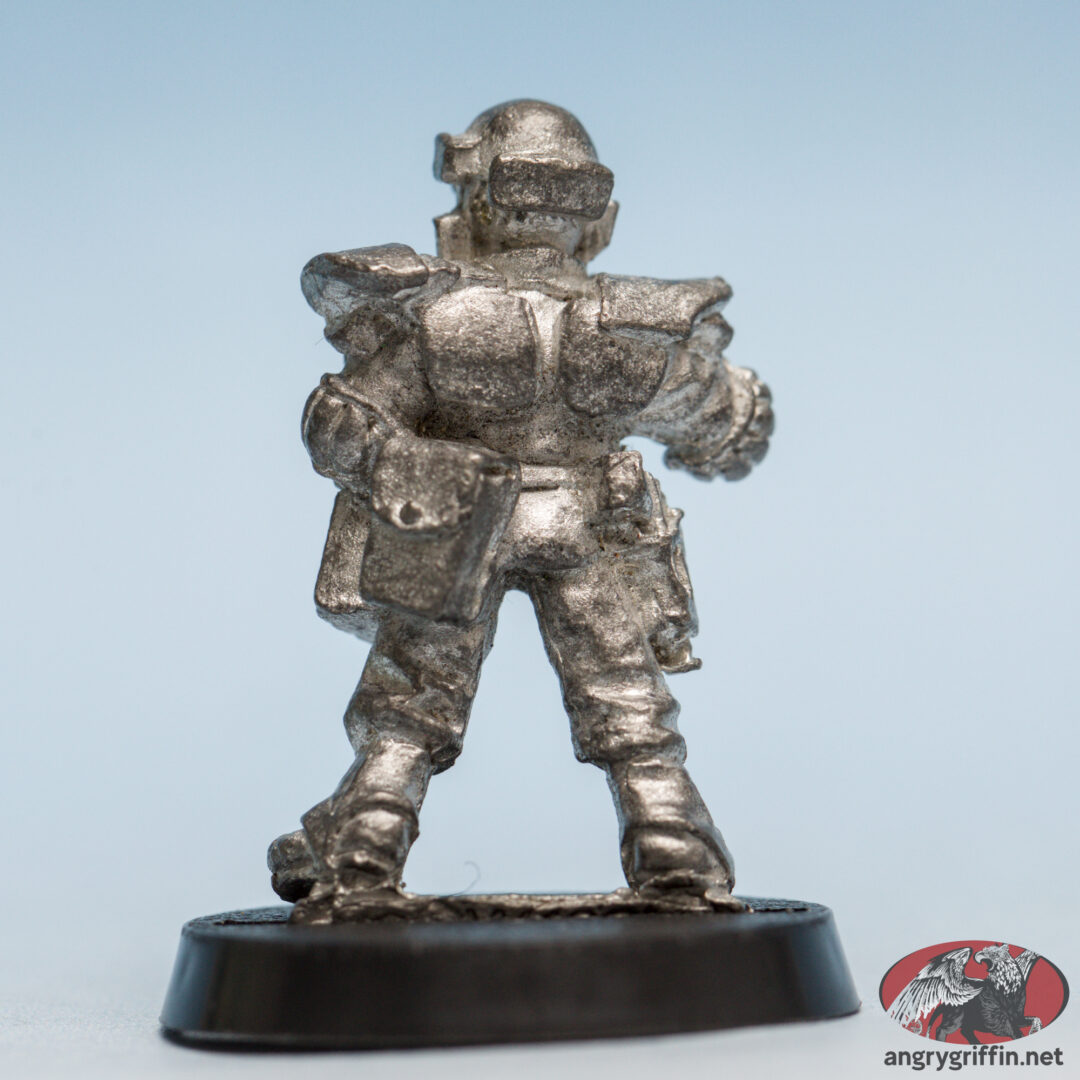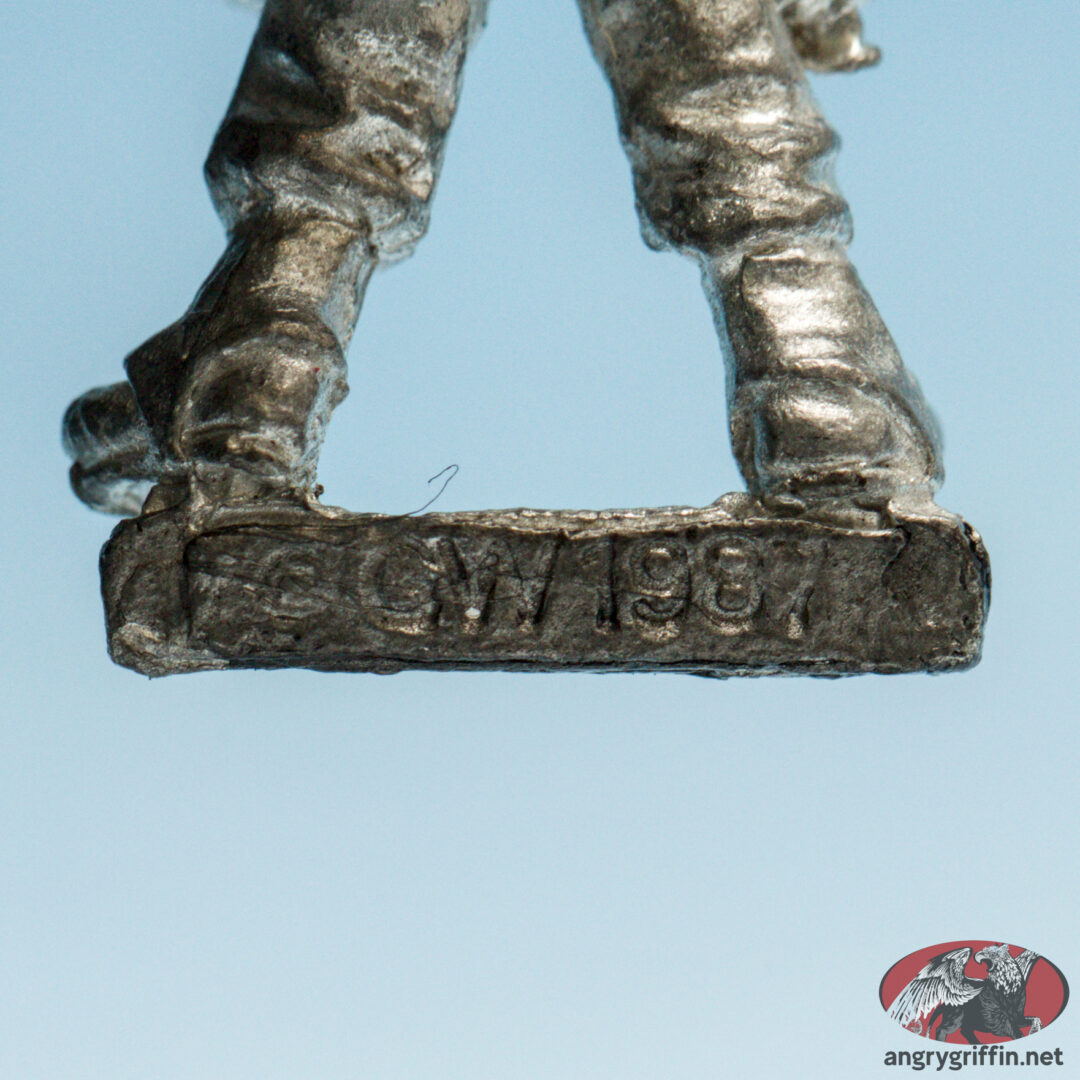 This metal Rogue Trader miniature was called Medic Pointer. He’s a 1987 sculpt, and I can’t find an individual sculpting credit for him. It looks like he may share the same base sculpt as Captain Webb.