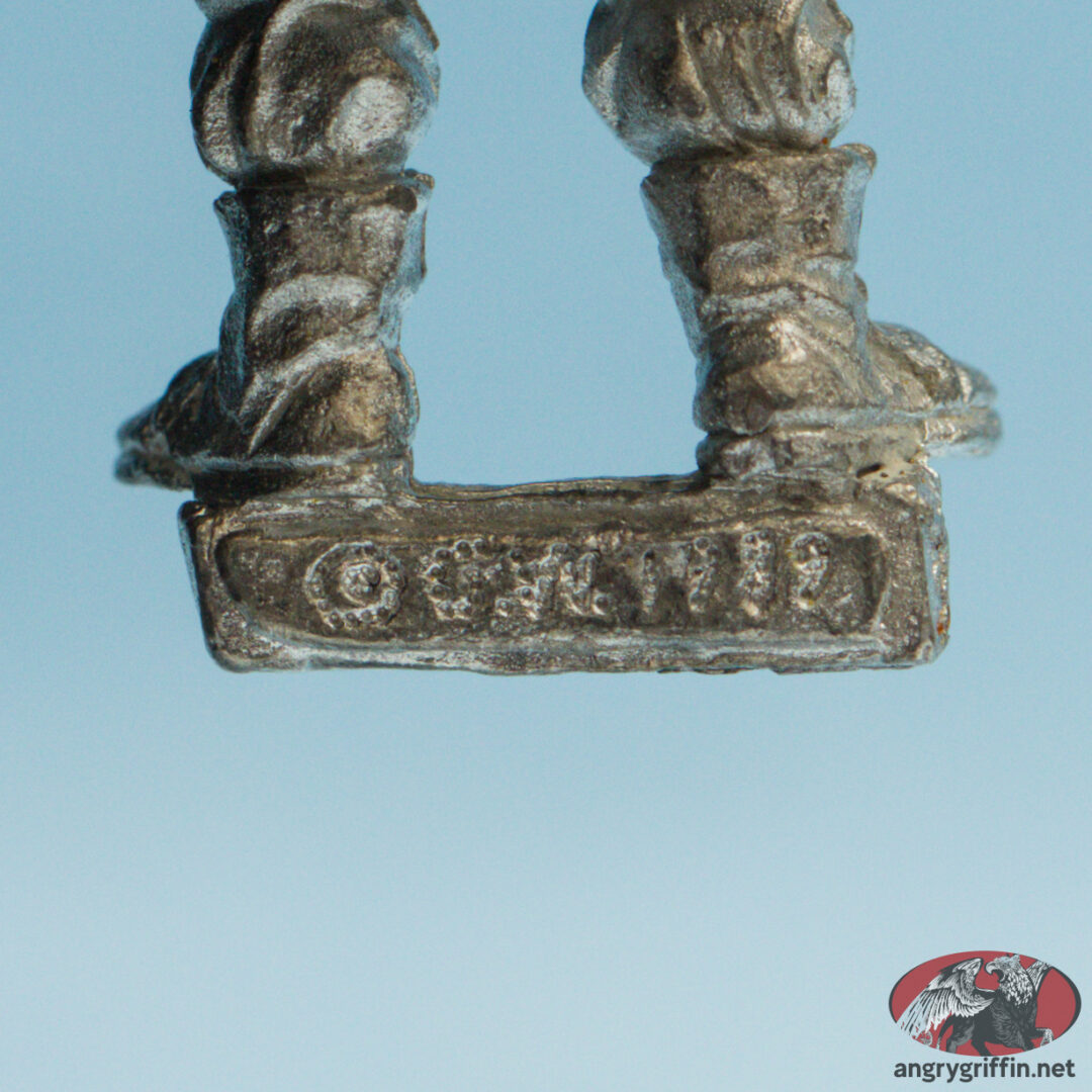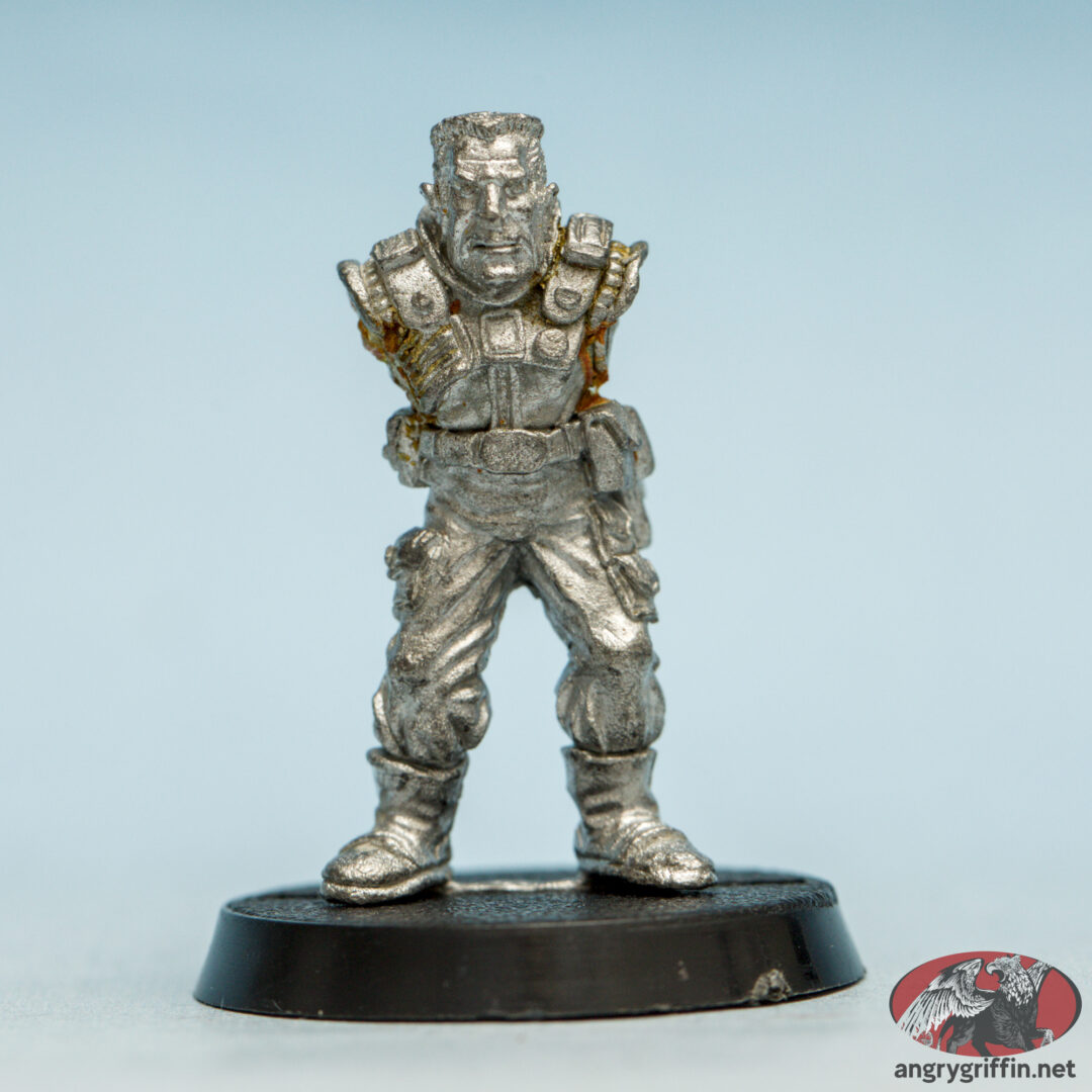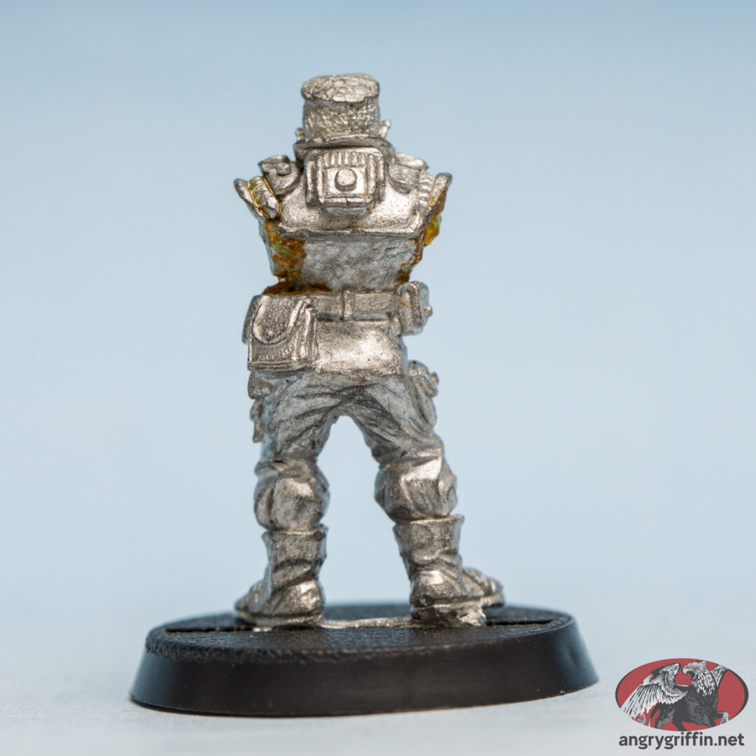 This metal Rogue Trader Imperial Army miniature went by “Trooper 9” in the 1991 Blue catalogue. I don’t know who sculpted him but he’s a 1989 sculpt.