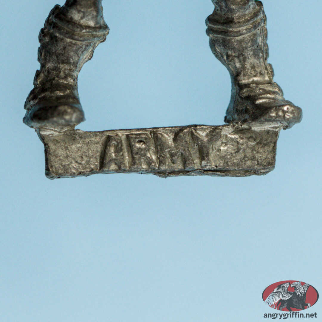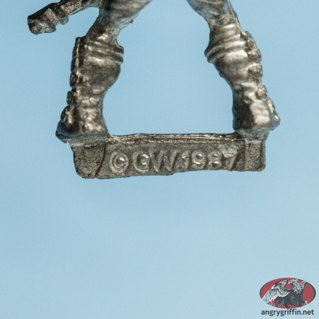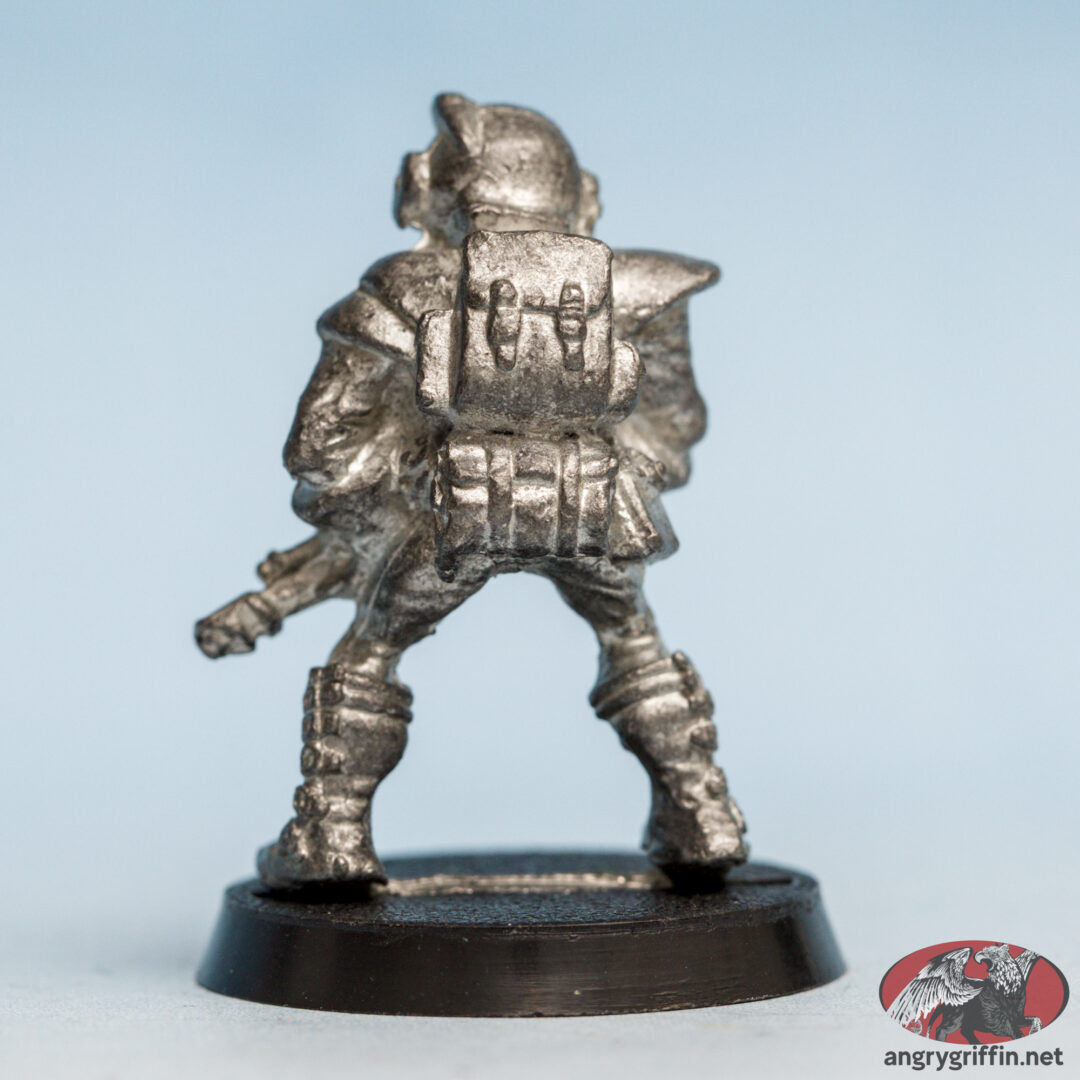This 1987 Warhammer 40K Rogue Trader Imperial Army miniature was sculpted by Aly Morrison, and went by Trooper Chow in the catalogues.