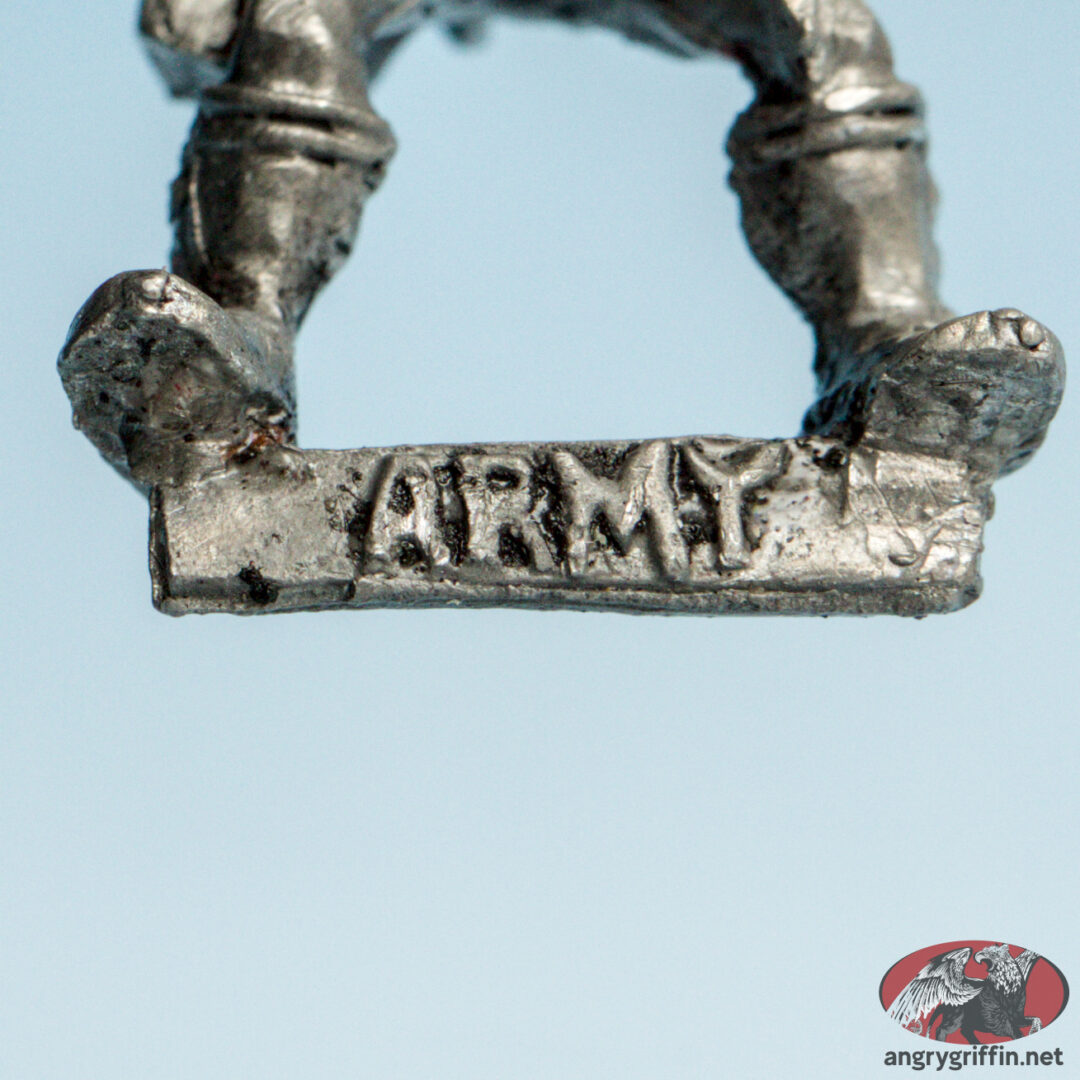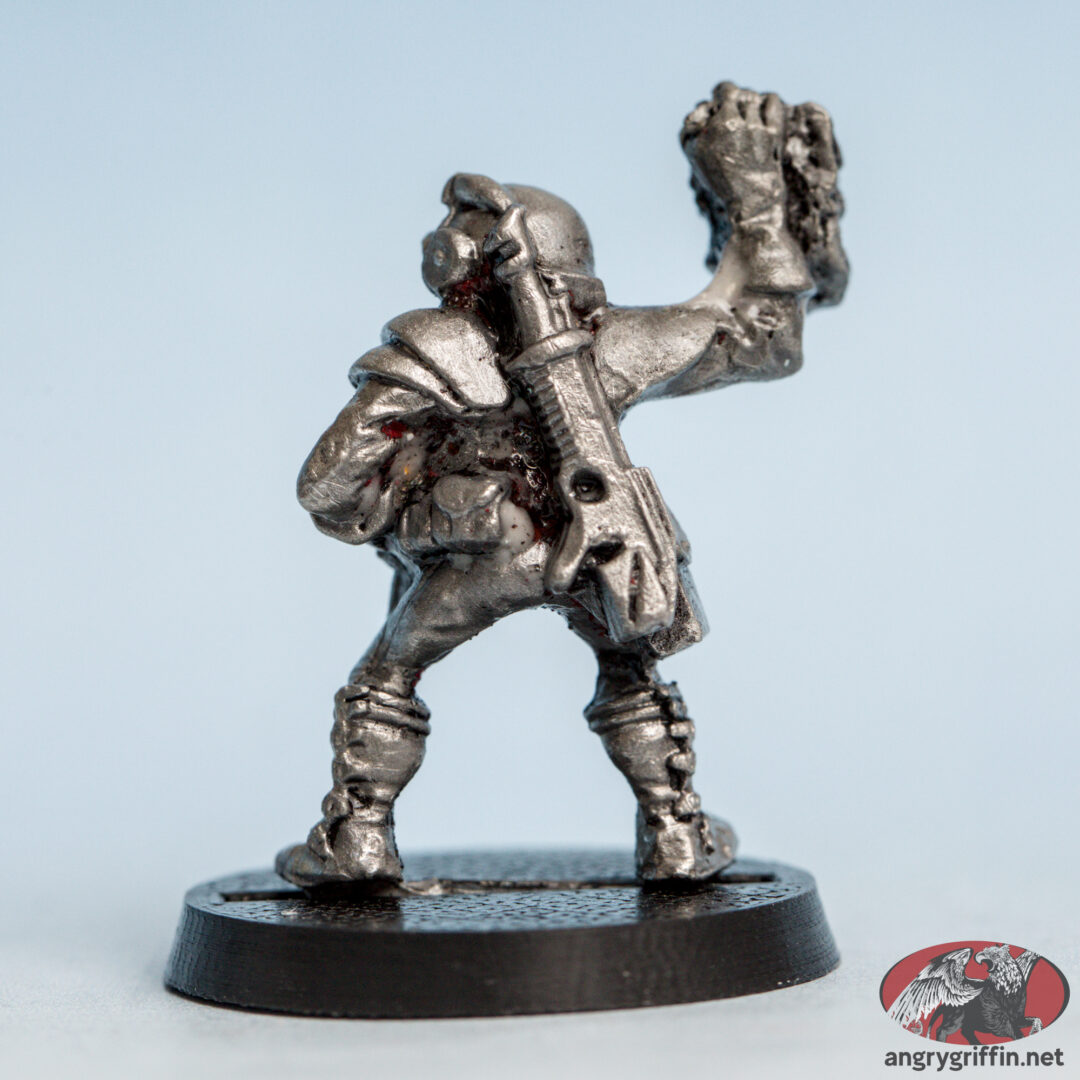 This metal Rogue Trader-era Imperial Army trooper was called Jones, and seems to be carrying an ork head…