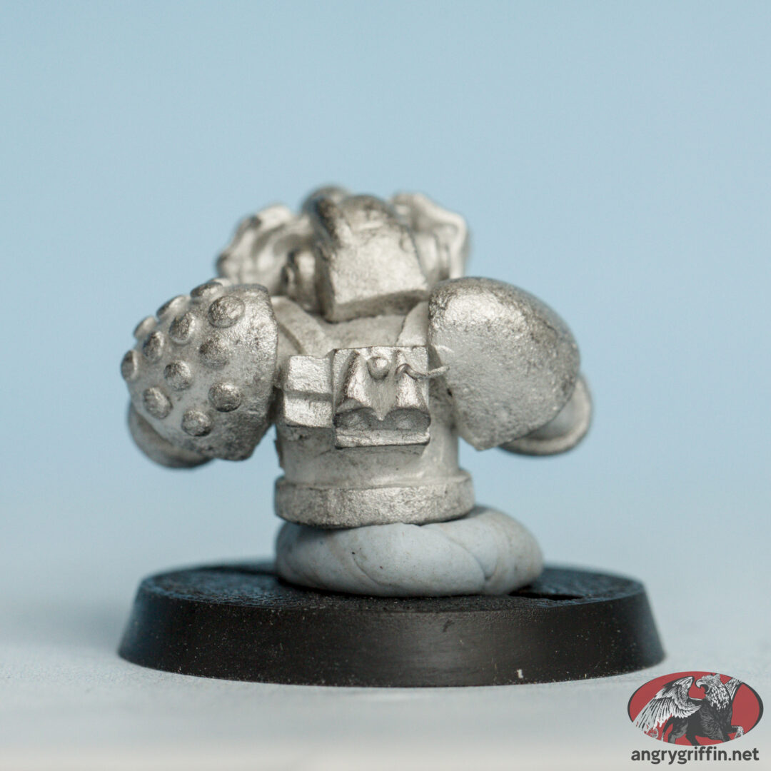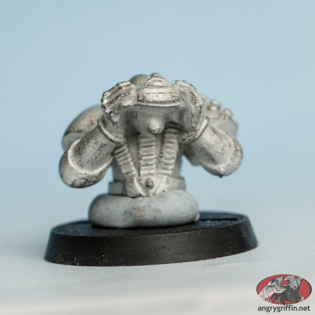 This Rogue Trader-era Space Marine torso with binoculars was one of the Rhino marines, designed to be used with one of the tanks from that period. His torso also works with the rider legs, however!
