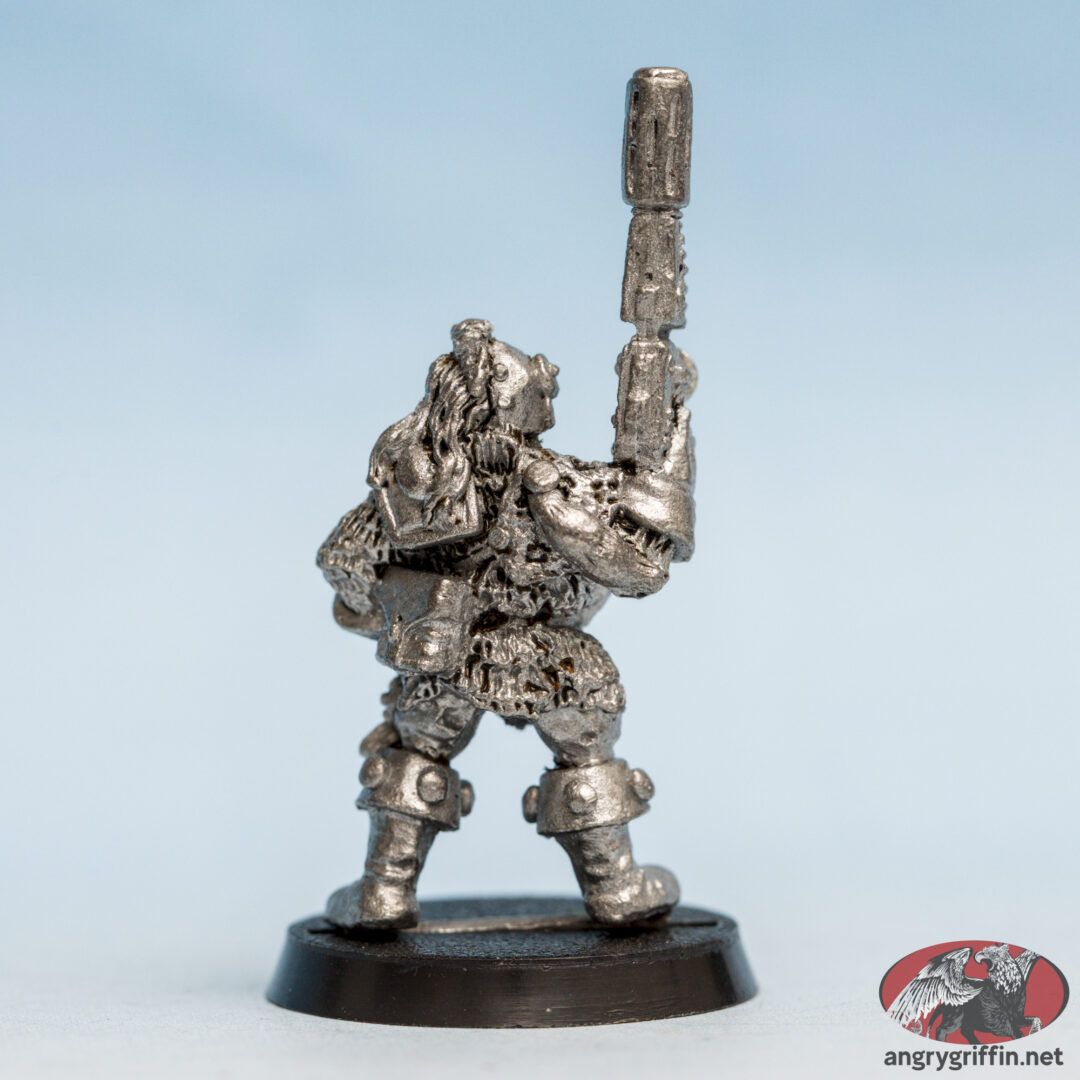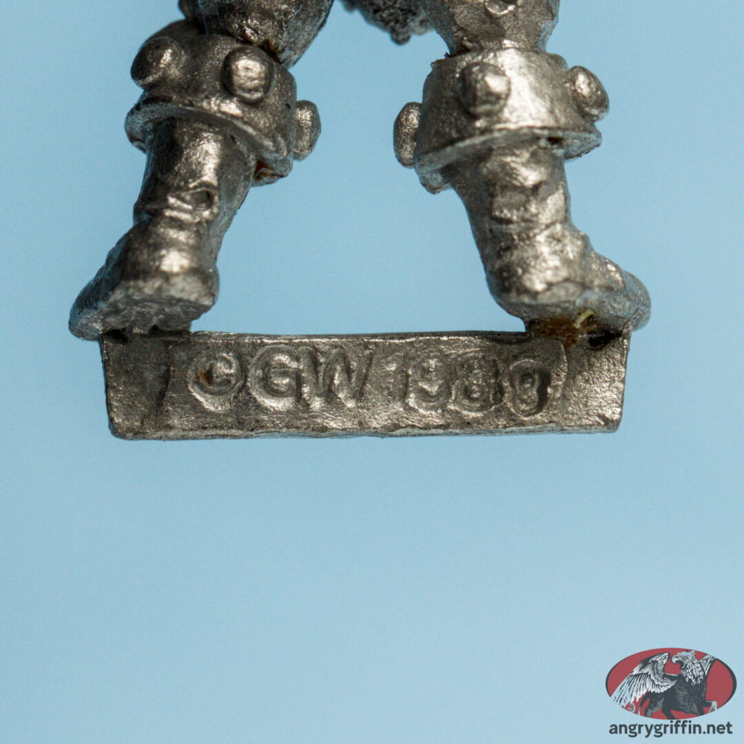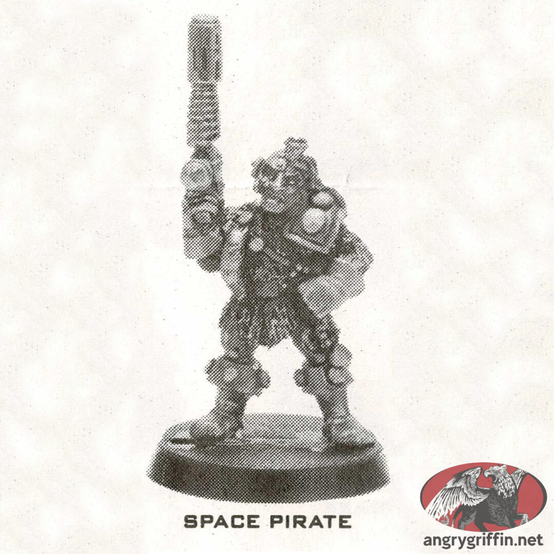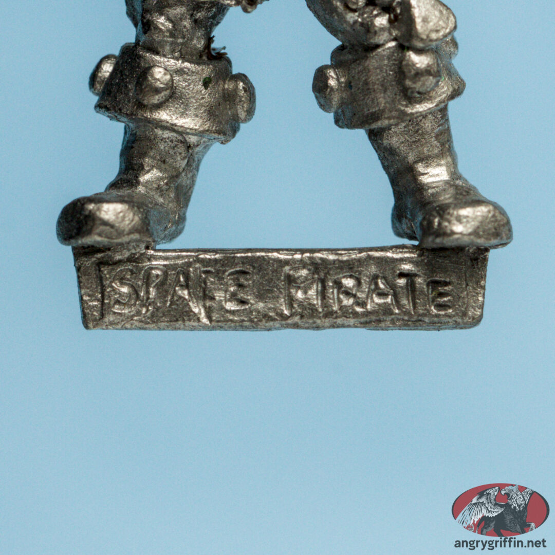 This metal Rogue Trader-era Space Pirate was part of the RT601 Adventurers and Pirates range. He’s a 1988 sculpt by Trish Carden.