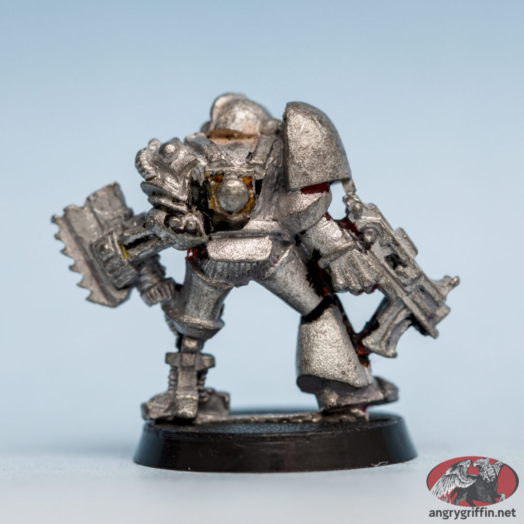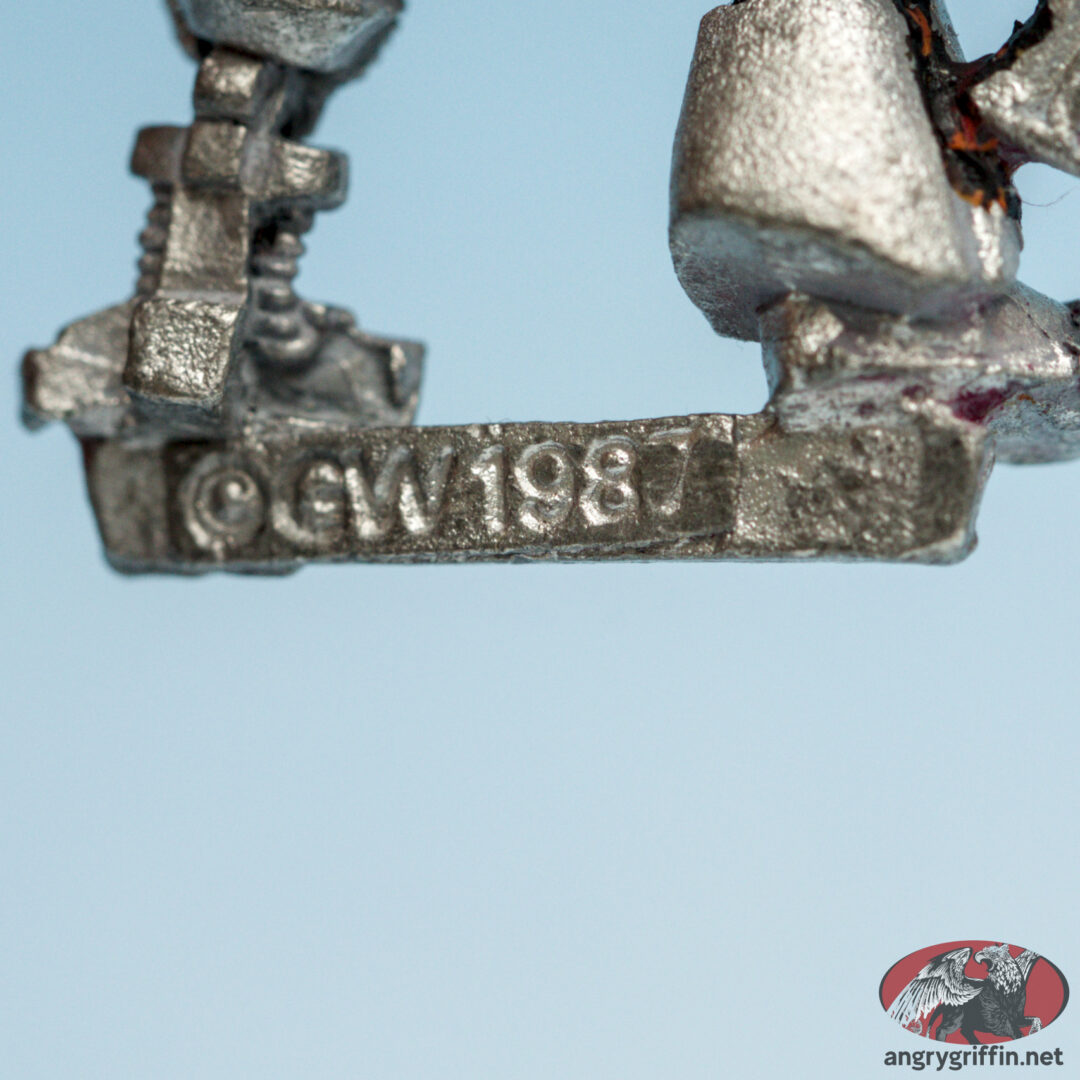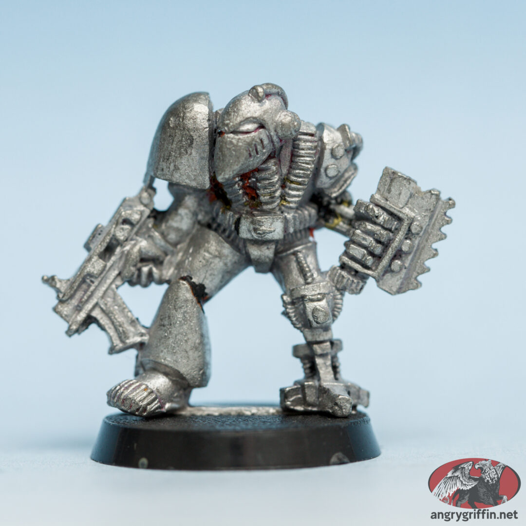 This Rogue Trader-era Space Marine was shown in the April 1988 issue of White Dwarf, and went by the moniker Brother Craven. He was sculpted by either Mark Copplestone or Aly Morrison.