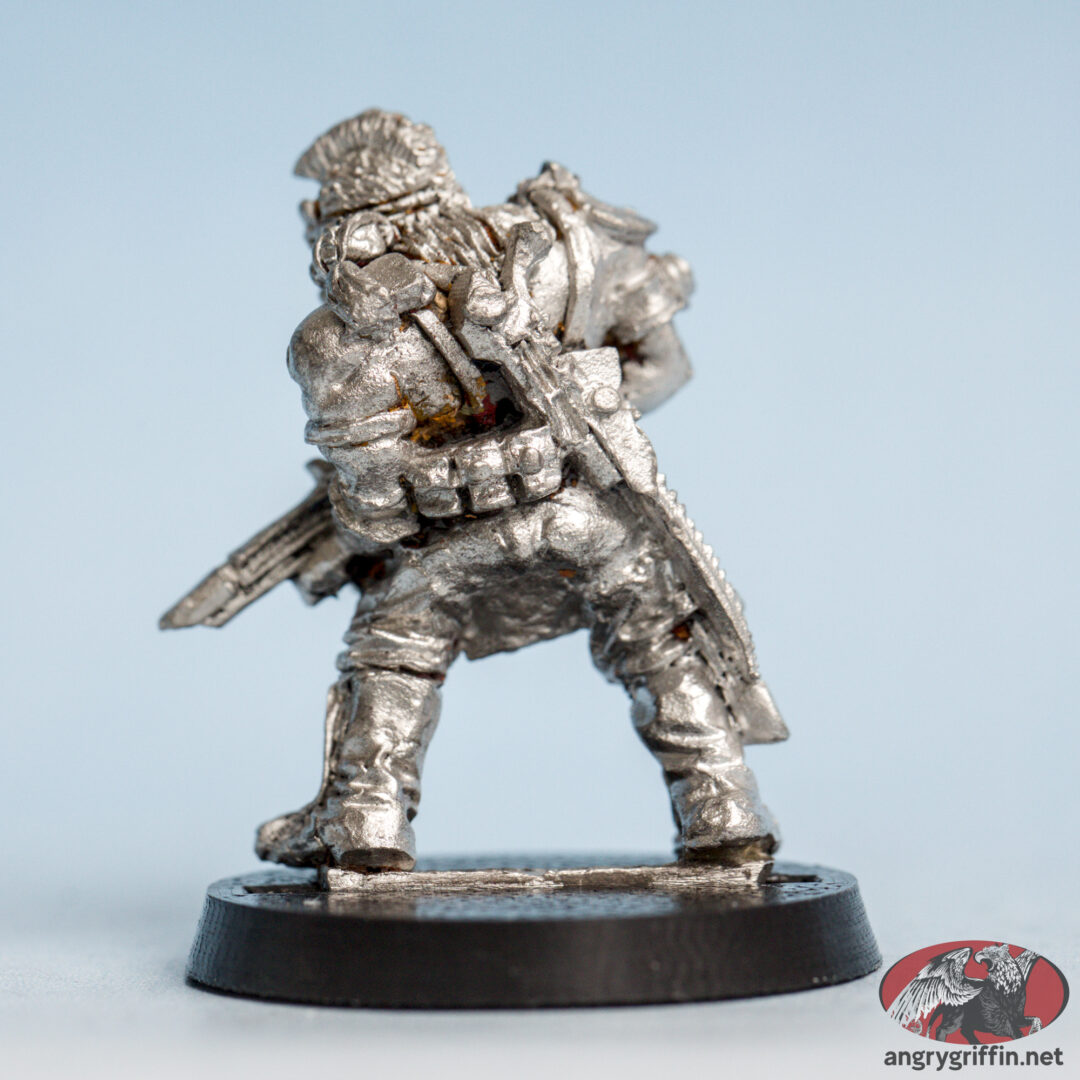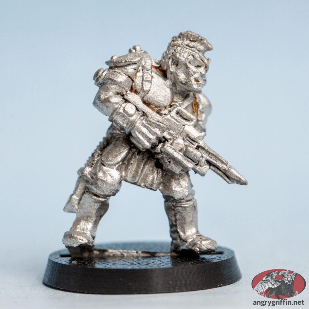 This metal Rogue Trader Space Marine Scout model is seen in White Dwarf #107 and is credited to Bob Naismith. It doesn’t seem to appear in any of the other catalogues.
